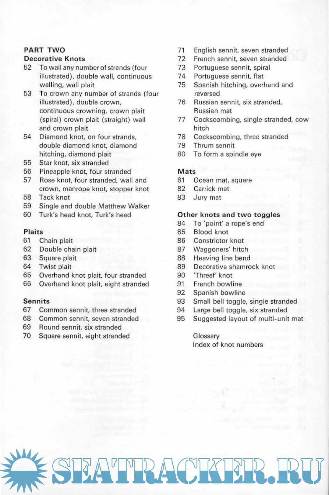 Year: 1994 Language: English Author: Fry E.C. Genre: Manual Publisher: David & Charles Format: PDF Quality: eBook Pages count: 177 Description: A series of detailed instructional photographs accompany the instructions for 95 different knots and ropework examples. This was originally published in 1977 and 1978 as two different books. This combined edition was originally published in 1981; this copy shown here is a third printing of that edition. 9.75 inches tall, unpaginated (about 175 pages).