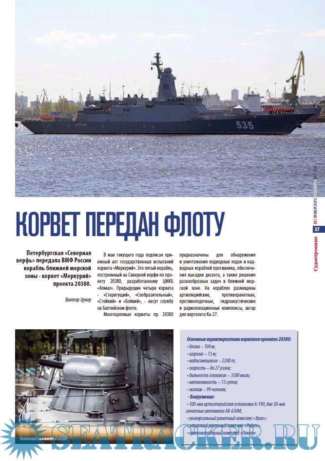 Описание: «Вести морского Петербурга» - Информационно-аналитический журнал отражает все тенденции развития морской составляющей экономики Санкт-Петербурга, а также транспортного комплекса России и европейских государств. Рубрики журнала: Морская столица, Порты и терминалы, Отраслевое законодательство, Судостроение, Морской и речной транспорт, Транспорт и логистика, Новые технологии, Таможня, Наука и образование, Морская история, Морское страхование.