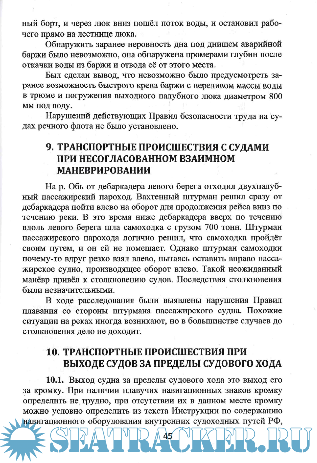 10. ТРАНСПОРТНЫЕ ПРОИСШЕСТВИЯ ПРИ ВЫХОДЕ СУДОВ ЗА ПРЕДЕЛЫ СУДОВОГО ХОДА.......................45