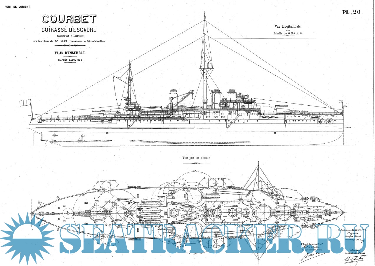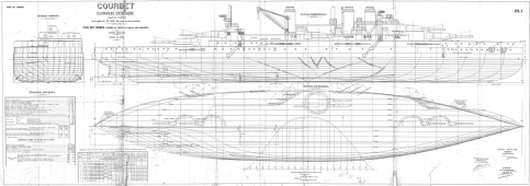 Описание: 33 листа архивных чертежей французского крейсера COURBET 1911 год