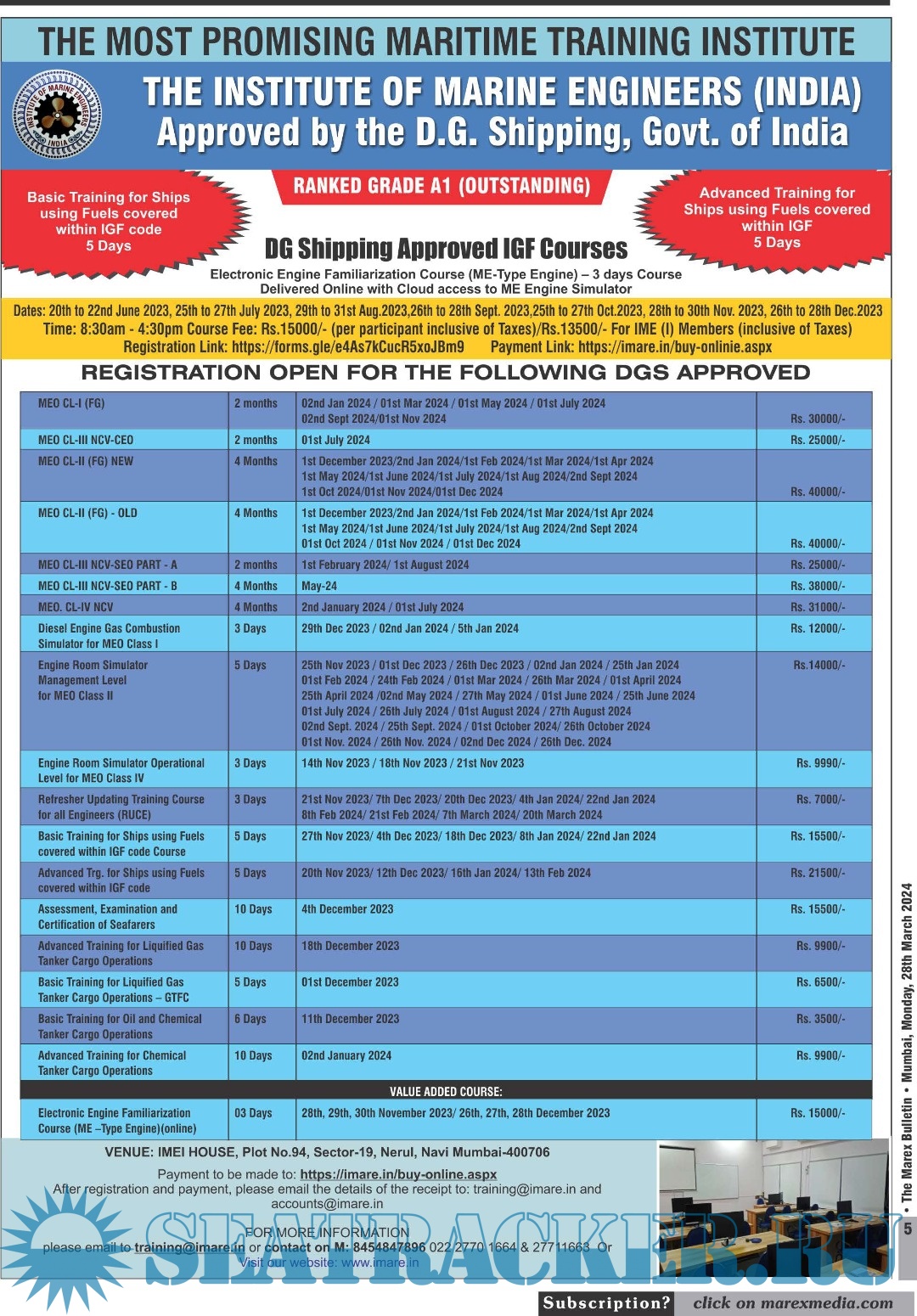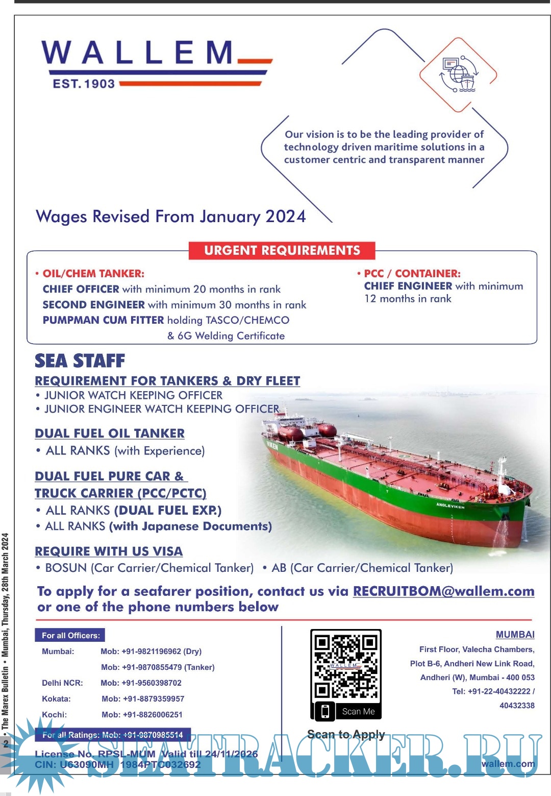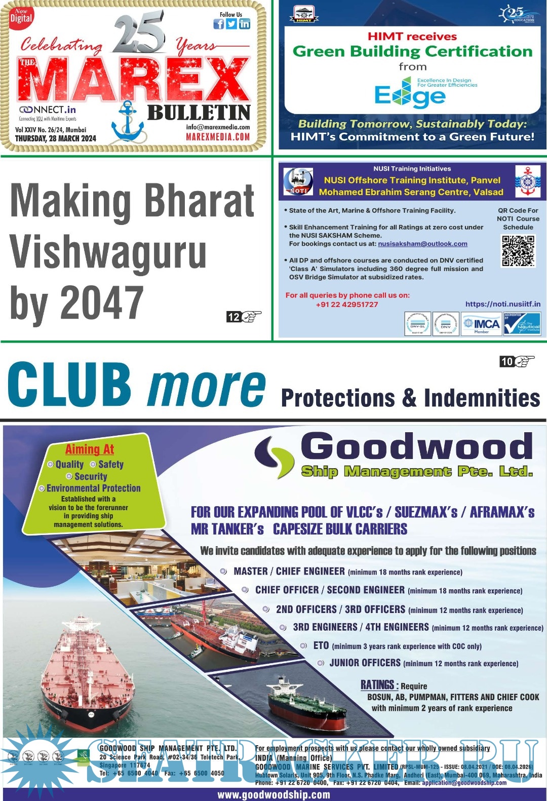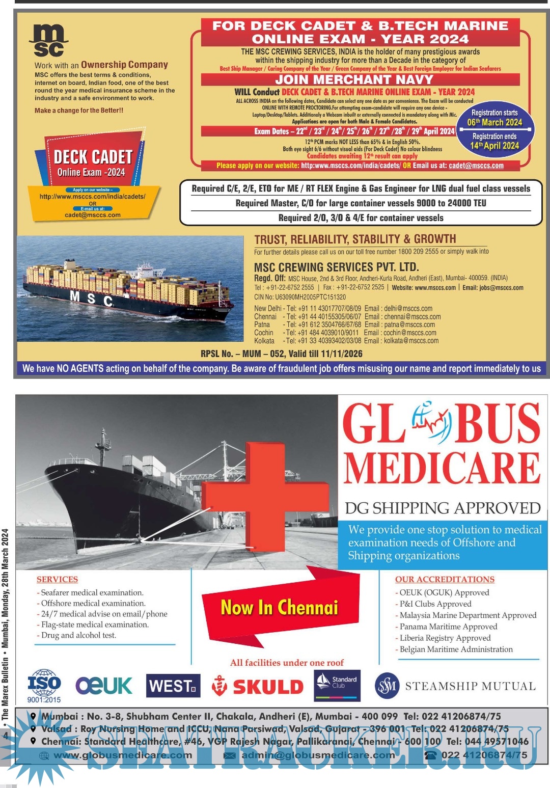 Description: The No 1 Twice weekly employment magazine for Seafarers.The Leading magazine for seafarers to locate Ship-board Employment opportunities, Training Institutes, Shipping companies.Online version: https://issuu.com/marexmediapvtltd