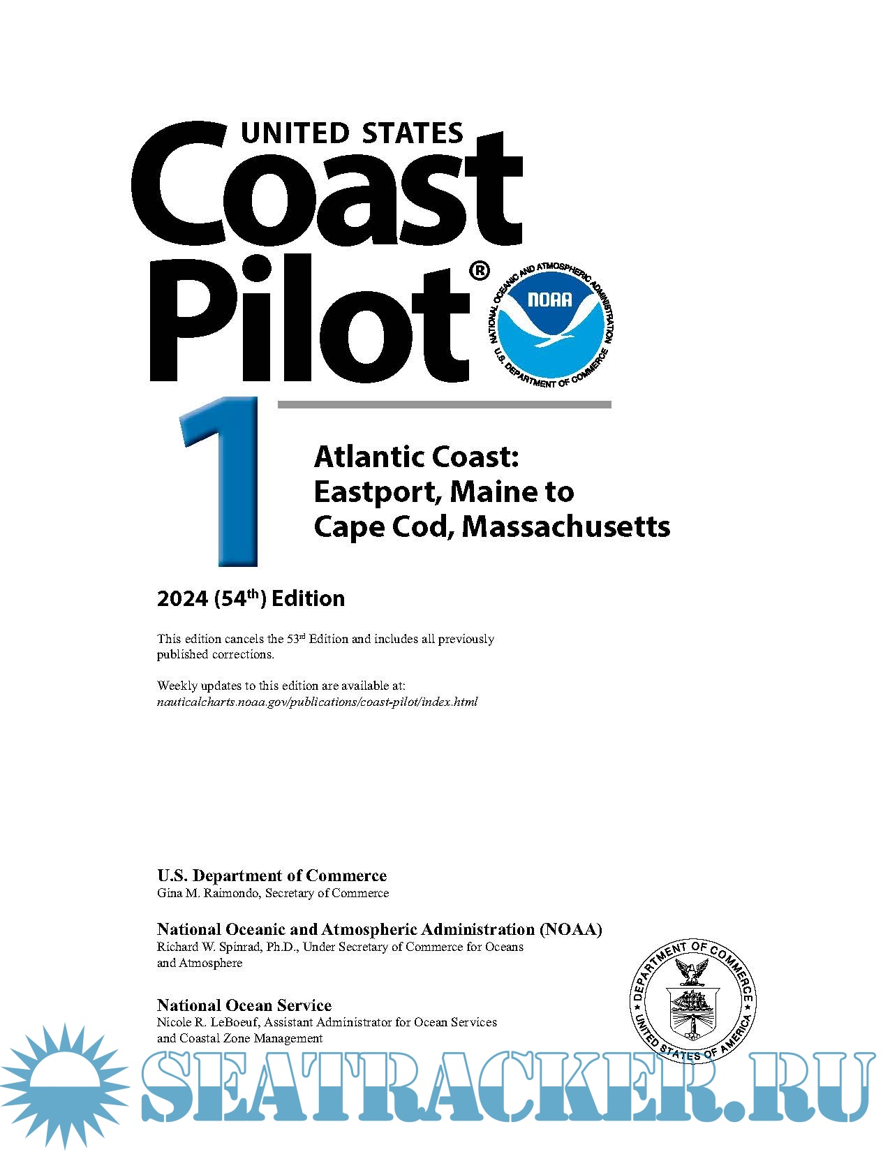 Year: 2024 Language: English Author: NOAA Genre: Documentation Edition: 2024 (54th) Edition Format: PDF Quality: eBook Pages count: 440 Description: The United States Coast Pilot® consists of a series of nautical books that cover a variety of information important to navigators of coastal and intracoastal waters and the Great Lakes. Issued in ten volumes, they contain supplemental information that is difficult to portray on a nautical chart. Topics in the Coast Pilot include channel descriptions, anchorages, bridge and cable clearances, currents, tide and water levels, prominent features, pilotage, towage, weather, ice conditions, wharf descriptions, dangers, routes, traffic separation schemes, small-craft facilities, and Federal regulations applicable to navigation. This edition cancels the 53rd Edition and includes all previously published corrections. Updated upto 24 March 2024