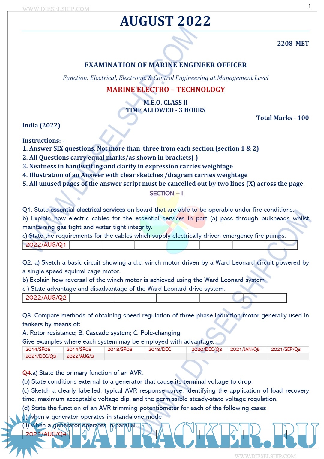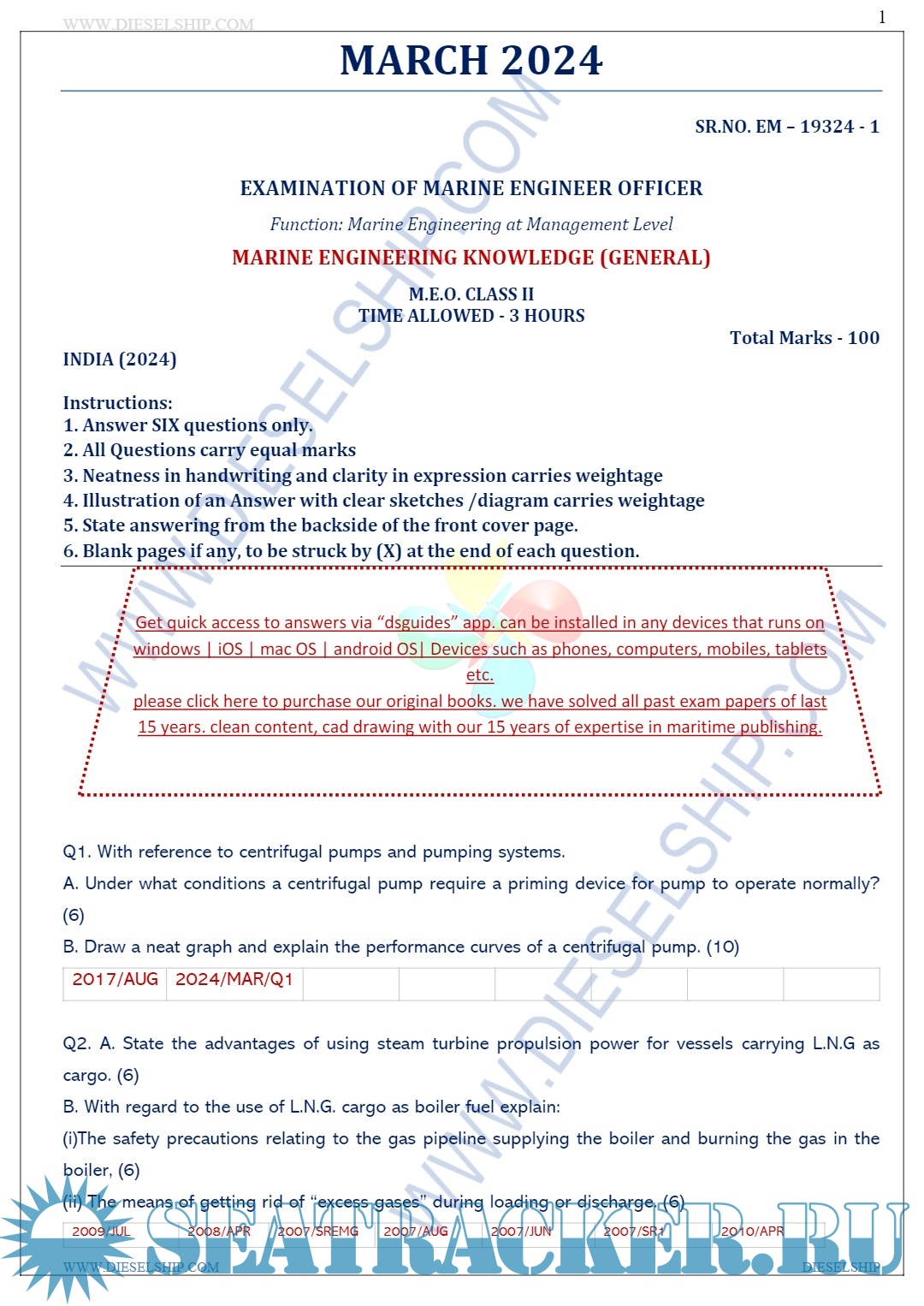 Description: M.E.O. Class II Question Paper set for Mercantile Marine Department (MMD), D.G. Shipping India Exams.