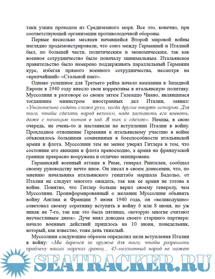 Описание: О немецких подводных лодках, охотившихся на суда союзников в трех океанах поодиночке и в так называемых «волчьих стаях», написаны десятки книг. О том же, что в битве за море активно участвовали и подводные лодки Реджиа Марина (итальянского флота), мало кто знает. Между тем подводный флот Муссолини к началу Второй мировой войны был многочисленнее, чем у любой другой страны, даже чем у нацистской Германии. А итальянские капитаны по смелости, авантюризму и склонности к самоубийственным атакам могли посоперничать со своими немецкими коллегами. И в отличие от воевавшего бесславно надводного флота ВМС Италии, подводники дуче действовали достаточно профессионально и эффективно. Субмарины доходили до берегов Америки и Южной Африки, на их счету десятки подтвержденных потопленых кораблей и судов в Атлантике и в Индийском океане. В данной книге автор впервые собрал подробные сведения о действиях подлодок Муссолини, их тактике, результатах торпедных атак, а также о наиболее прославившихся субмаринах и их командирах.
