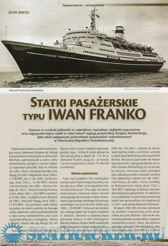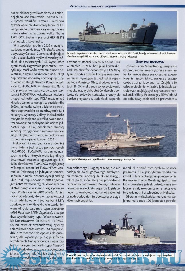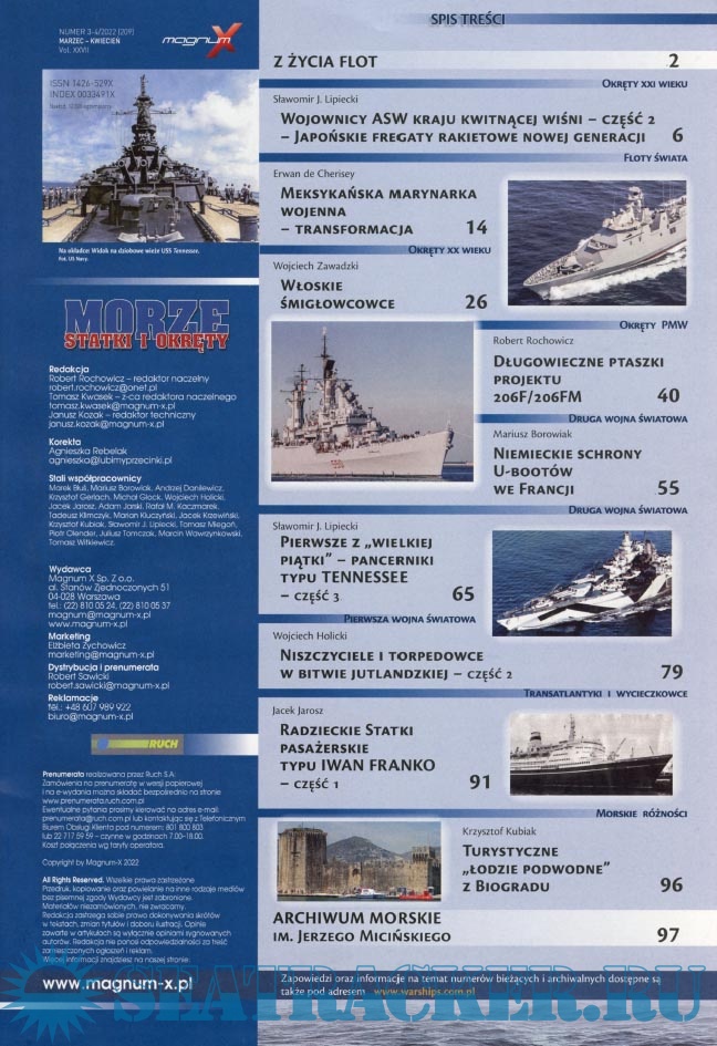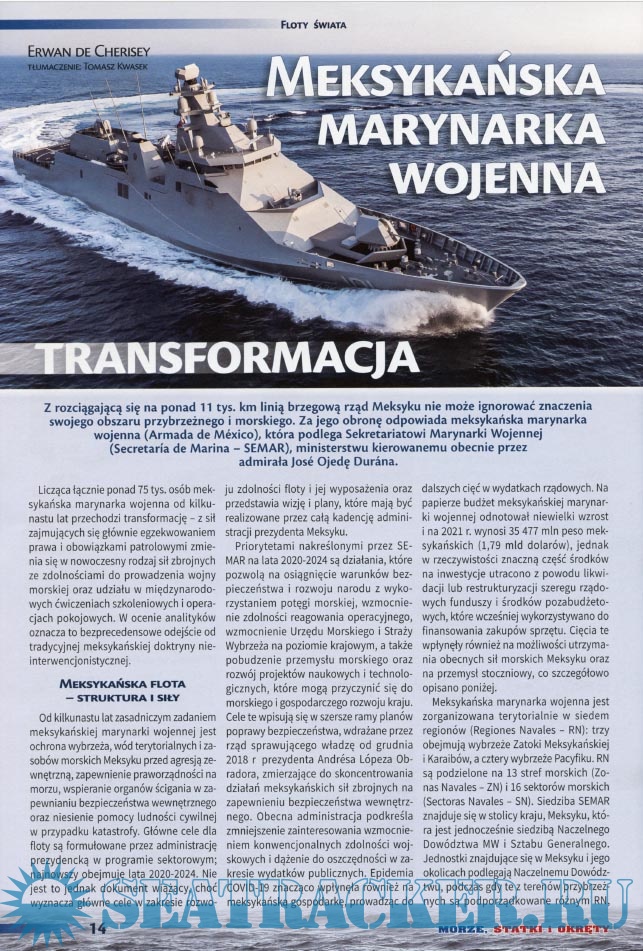 Description: Польский морской журнал. Издается с 1996 года, первоначально как ежеквартальный. С 1999 года издается раз в два месяца, а с 2007 года-как ежемесячный. Первоначально назывался Morza Statki i Okrety, в 2006 году переименован в Morze Statki i Okrety. С 2004 года полностью цветной (ранее только вставки). В 2008 году стали издаваться специальные выпуски, первоначально нерегулярные. С 2014 года выпускается как обычное издание и специальное издание, с непрерывной нумерацией.
