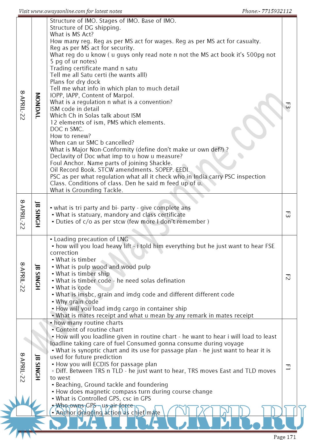 Orals Question Bank (March 2024) for Chief Mate F.G. Mercantile Marine Department (MMD), India Examinations
