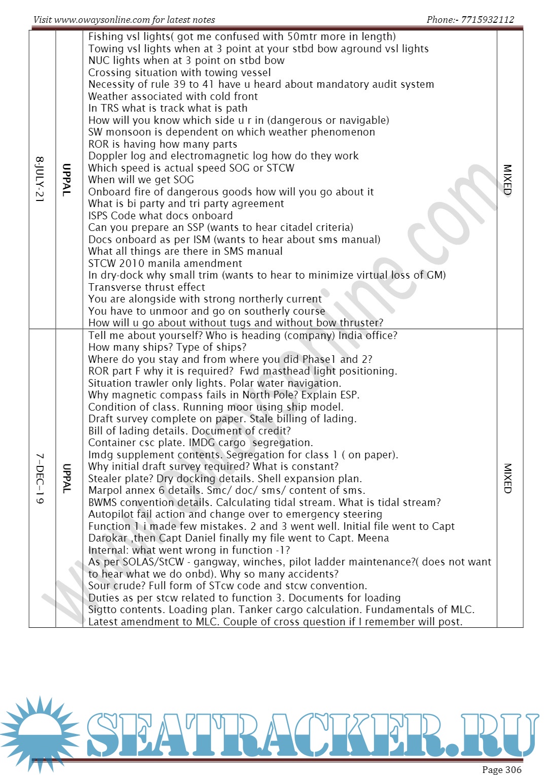 Description: Orals Question Bank for Chief Mate F.G. Mercantile Marine Department (MMD), India Examinations.