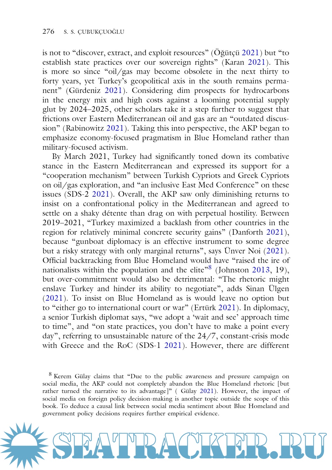 Description: This book explores the significance of Turkey’s Blue Homeland (Mavi Vatan) naval concept through the lens of neoclassical realism by investi-gating the impact of geopolitics and domestic political factors on foreign policy outcomes. It uncovers motivations behind the policy change between 2004 and 2023 with a particular focus on the last seven years, the period when Turkey’s naval assertiveness reached its peak following the failed coup attempt in 2016. The argument highlights that Blue Home-land is an extension of Turkey’s national self-conception embodied in the Vatan concept; it is the manifestation of a traditional land power claiming its place as an emergent maritime power. The Justice and Development Party (AKP) government led by President Recep Tayyip Erdo˘gan has rein-forced an activist maritime policy since 2016 due to pressures of regional insecurity, domestic coalition logrolling, and nationalist sentiment.