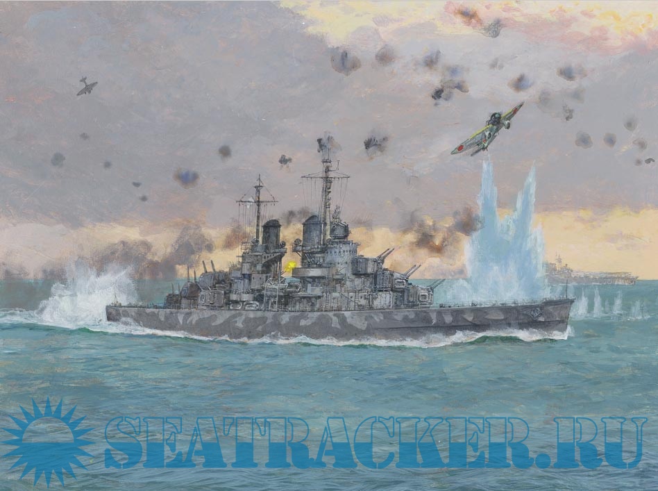 Description: During World War II, the United States built 72 light cruisers of various classes. In response to the severe air threat that surface ships faced, new cruisers were designed with increasingly heavy antiaircraft weaponry as well as the traditional six-inch guns. With the speed and range to keep up with aircraft carriers, and their considerable antiaircraft capability, they were a mainstay of the carrier escorts.