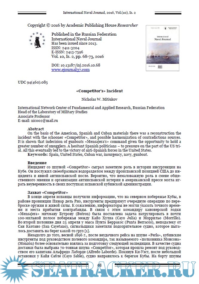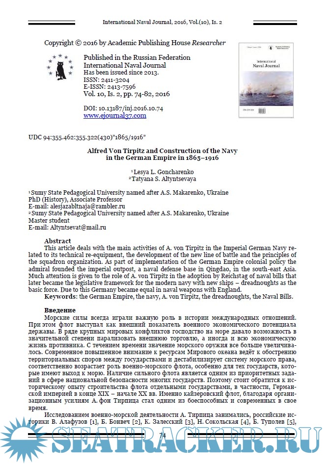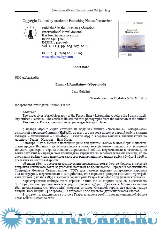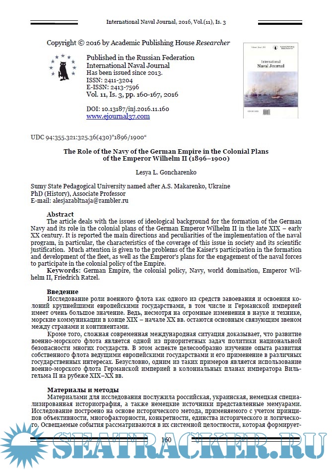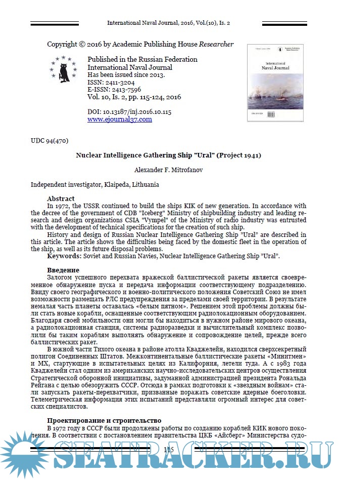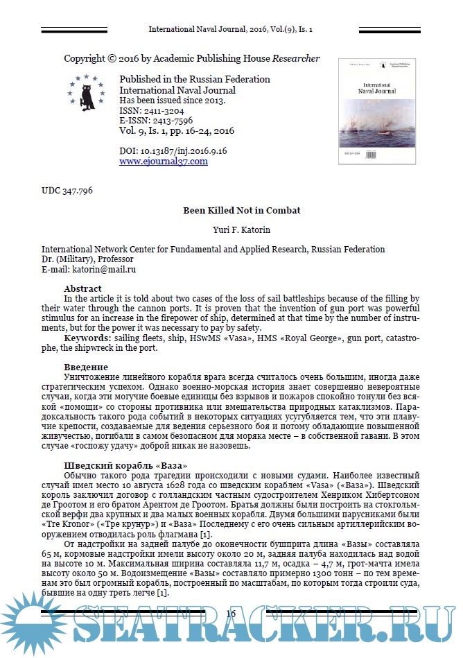 International Naval Journal за 2016 год (номера 9 - 12)