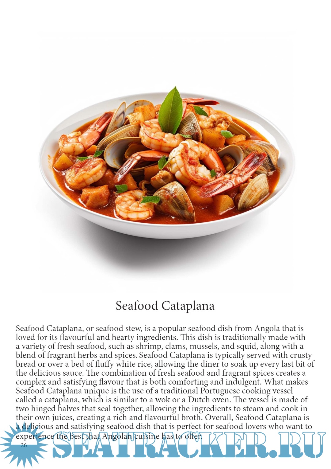 Description: Welcome to the culinary world of Angola, a country located on the west coast of Africa, known for its diverse seafood cuisine. Angola boasts a long coastline along the Atlantic Ocean, which provides the country with an abundant source of fresh seafood that is a staple in its traditional cuisine.
