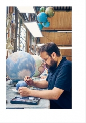 Peter Bellerby is a world-renowned globemaker and founder of artisan globemakers Bellerby & Co, which won the Queen’s Award for Enterprise in 2018 and 2021. Their studio has shipped globes to over sixty countries, and its work has been featured in books, on television, and in countless publications around the world. Peter lives in London with his partner Jade, who helps him run the company.
