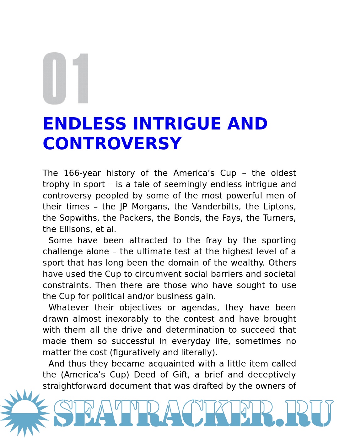 Year: 2017 Language: English Author: Sefton A., Keating L. Genre: History Publisher: Adlard Coles Format: PDF/EPUB Quality: eBook Pages count: 432 Description: The America's Cup has always been a hotbed of unbridled ambition, personal agendas, intrigue, spying, and more recently, hard-fought court cases--and that's before the boats even get out on the water to race. Exposed: The Dark Side of the America's Cup lifts the lid on this unique contest for the oldest trophy in sport and on the powerful men who have made it "the toughest game in town." For some it has been the key to social advancement, for others it has opened important doors in the business and commercial world, and in some cases it has become a magnificent obsession. It is the pinnacle of achievement in a sport that was once the domain of the wealthy but which today has become fertile territory for a new breed of super-wealthy owners and sailing professionals who would change the event forever. Exposed is a fascinating glimpse behind the scenes of one of the most compelling and controversial contests in the sporting world.