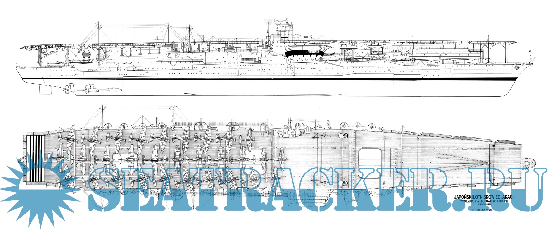 Description: Akagi - japoński lotniskowiec z okresu II wojny światowej. Zatopiony 5 czerwca 1942 w bitwie o Midway. Publikacja zawiera opis techniczny okrętu oraz jego kalendarium do wybuchu wojny. Całość uzupełniają wkładki z planami, schematami i rysunkami.