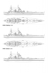 The two ships covered in this volume were the only capital ships designed and built between the wars—a special concession of the Washington Treaty’s ban on new battleships—and they were unlike anything before them, with the superstructure three-quarters aft and all main armament turrets forward of the bridge. During the war, Nelson survived mine and torpedo damage, while Rodney played a major part in the destruction of the Bismarck, both surviving to be broken up post-war.