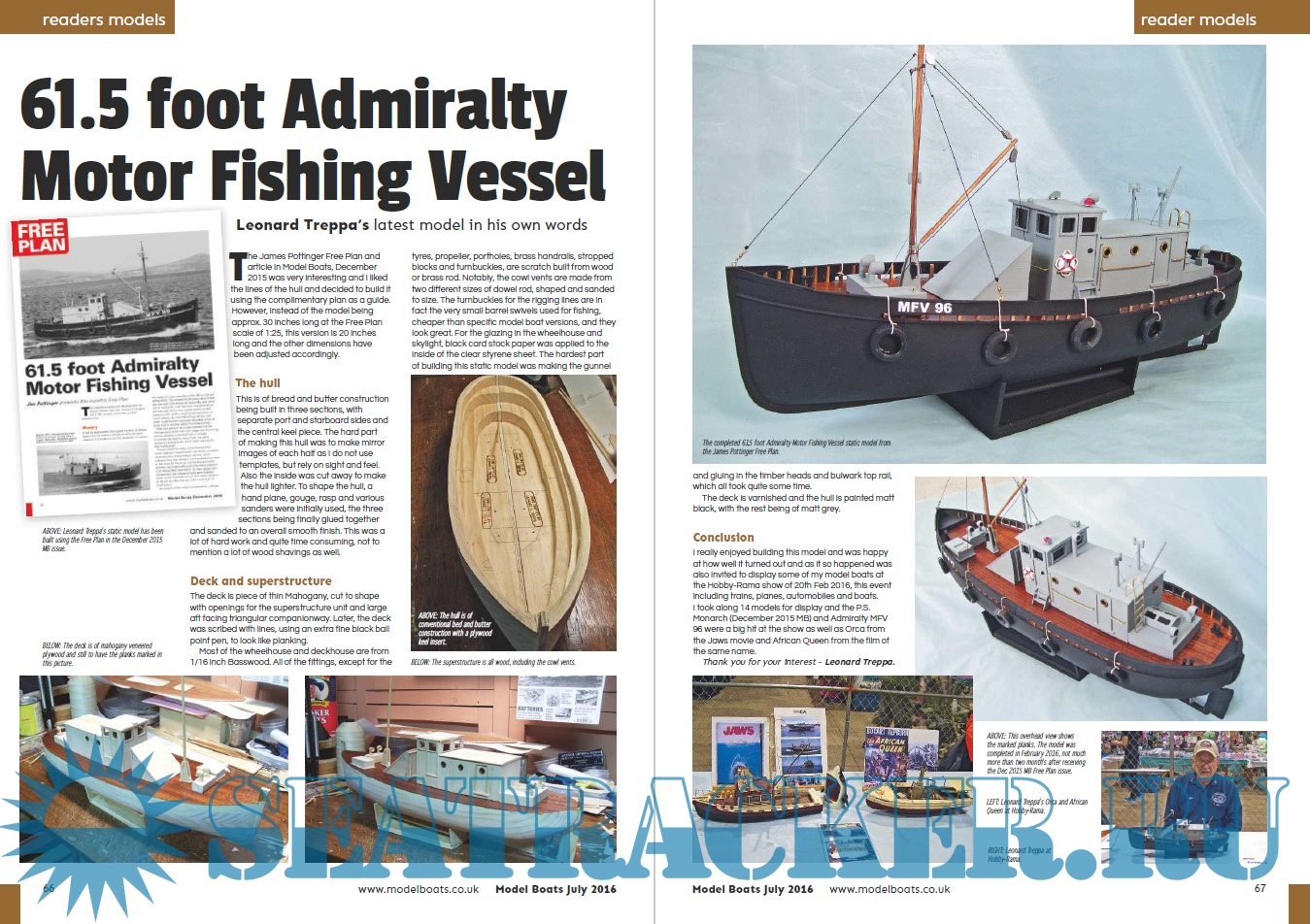Year: 2016 Language: English Author: Lindsey Amrani (Editor) Genre: Periodical (magazine) Edition: 2016-07 Format: PDF Quality: eBook Pages count: 84 Description: Model Boats magazine is a practical and informative read for those with a love for the hobby. It covers the latest news and views from the various clubs and associations around the country, useful hints, tips and step by step guides for those interested in the art of constructing a model boat as well as tests and recommendations of new boats and tools. Floating along behind these are great special features examining in depth different models from narrowboat to destroyer!
