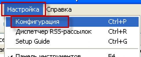 2. После этого в главном меню uTorrent выбираем пункты "Настройка->Конфигурация" или нажимаем комбинацию клавиш Ctrl+P.