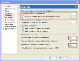 5. Существуют еще параметры, которые напрямую влияют на скорость скачивания файлов с различных торрент-трекеров, при этом они не связаны с настройками uTorrent. К ним относятся: - ИСХОДЯЩАЯ скорость Вашего Интернет-соединения (она зависит от выбранного Вами Интернет-провайдера и тарифного плана). Чем она меньше, тем меньше и скорость раздачи информации. Обратите внимание, что у некоторых провайдеров исходящая скорость (отдача информации в Сеть) может быть значительно меньше входящей скорости (скачивание информации из Сети); - востребованность раздаваемых Вами файлов для ДРУГИХ участников торрент-сети. Дело в том, что при отсутствии или малочисленности участников торрент-сети, скачивающих раздаваемые Вами файлы, скорость раздачи у Вас будет или очень низкой, или вообще равной нулю; - работают ли в данный момент на компьютере другие программы, отдающие информацию в сеть Интернет (это могут быть любые программы, служащие для загрузки файлов с Вашего компьютера на различные сайты или передачи ее через Интернет на другие компьютеры). Если такие программы в настоящий момент работают, то скорость Интернет-соединения распределяется между всеми программами, отдающими информацию в сеть Интернет и скорость раздачи может снижаться; - версия uTorrent. Как правило, самые новые версии программы содержат различные исправления и обновления, повышающие скорость раздачи файлов;
