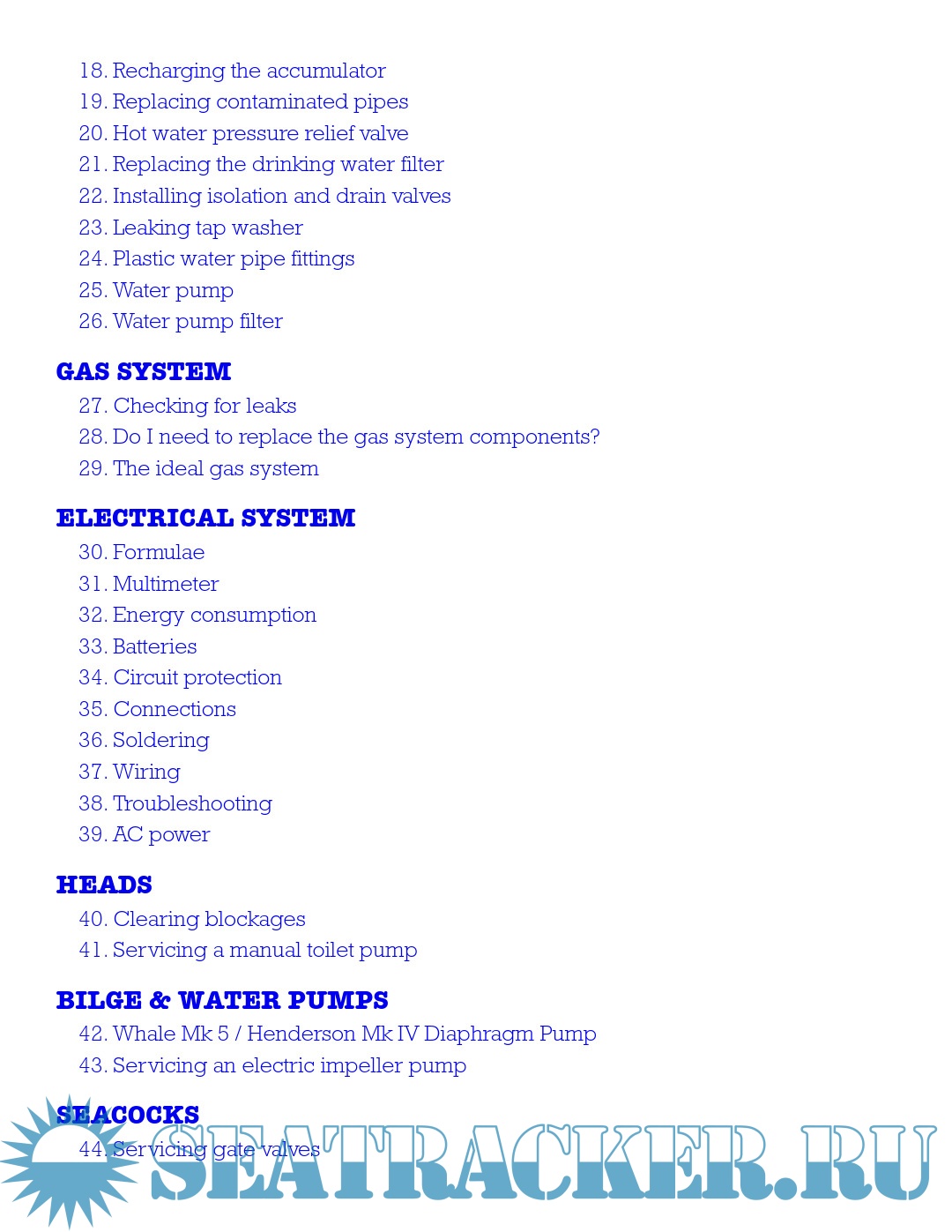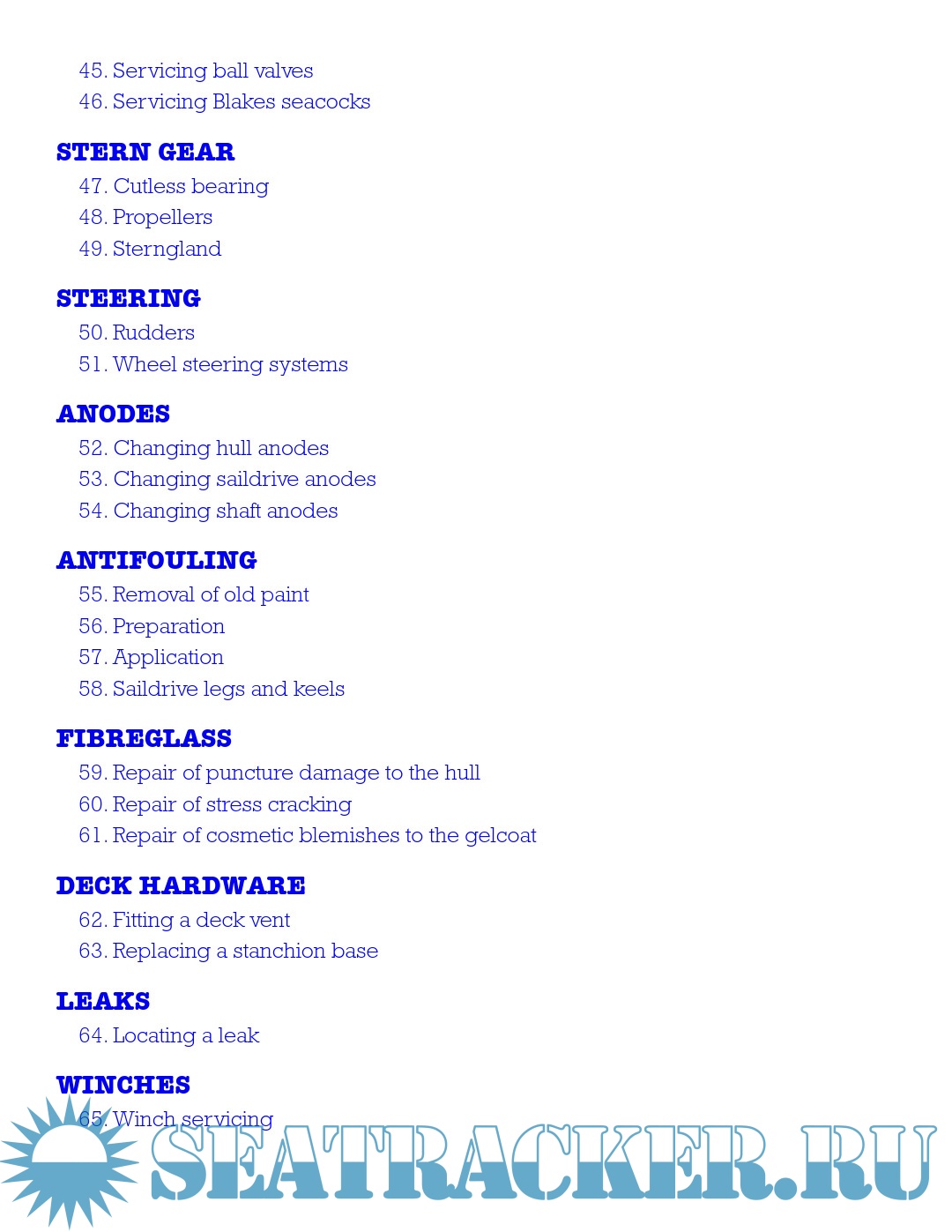 Description: Simple Boat Maintenance concentrates on the 67 most common boat maintenance jobs. Each is rated for difficulty on a scale of 1-5 and is explained in simple steps with lots of photos and diagrams. No special tools are required and no skill is assumed. Take this book in one hand, a spanner in the other and set to work. Learn how to: solve most engine problems; look after the gas, water, fuel and electrical systems; service pumps, winches, windlasses & sterngear; repair cracks & holes in fibreglass; find & cure leaks.