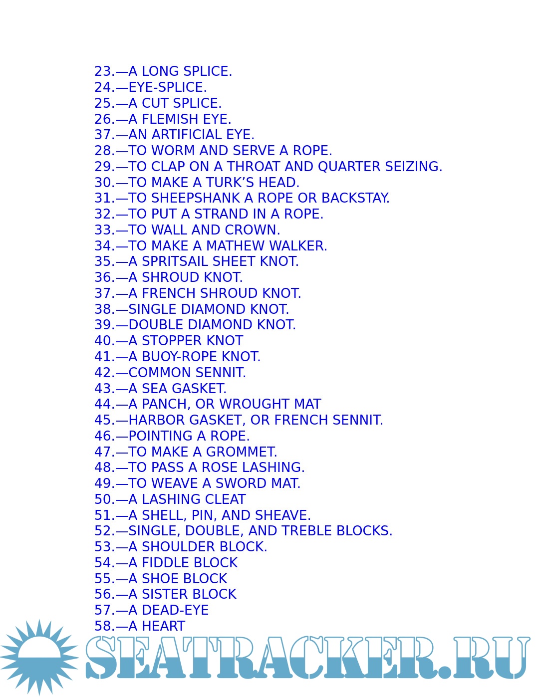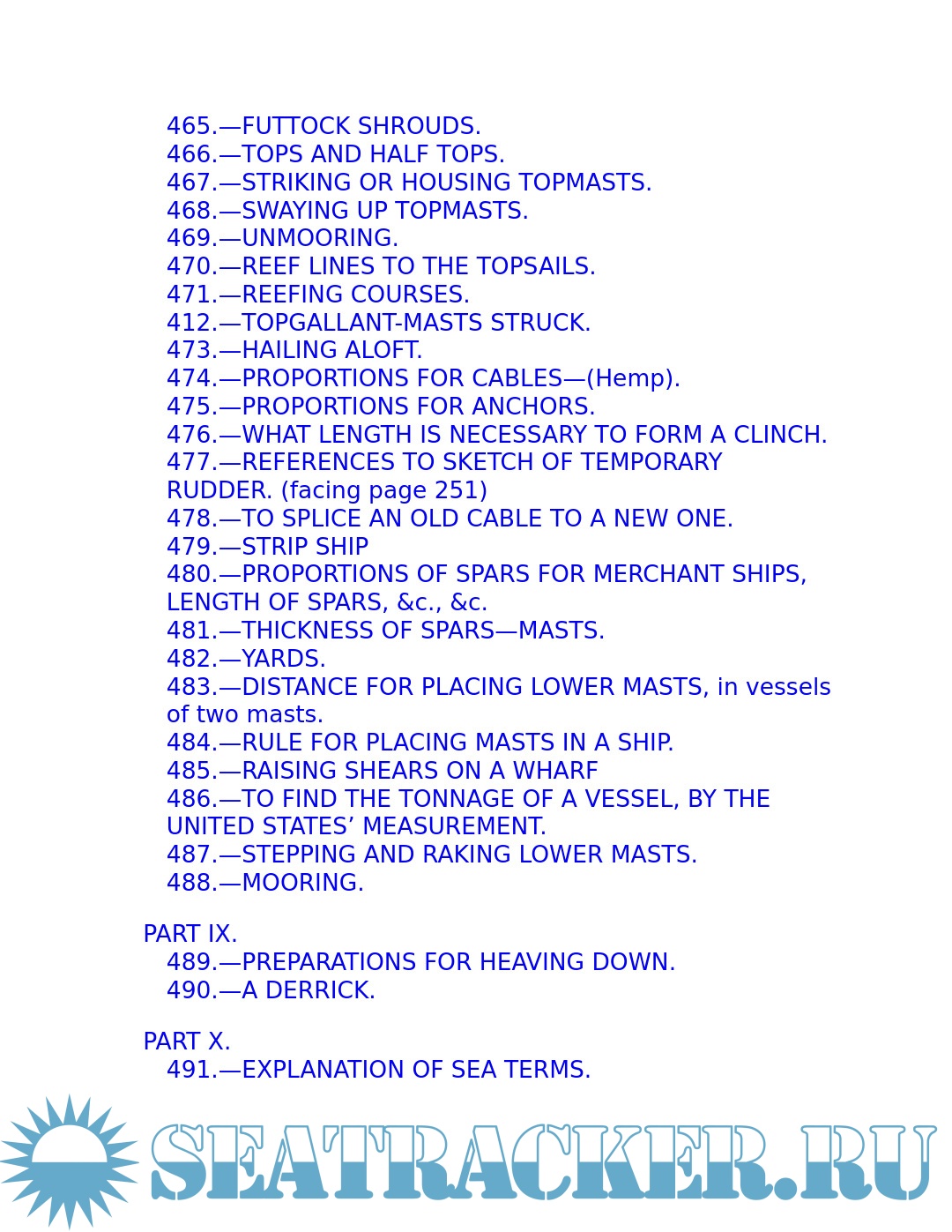 Year: 2013 Language: English Author: Brady W.N. Genre: Dictionary Publisher: Dover Publications Format: PDF/EPUB Quality: eBook Pages count: 611 Description: Immediately upon its publication in the mid-nineteenth century, this book became the Bible of U.S. sailors, who used it daily and followed its advice assiduously. The Kedge-Anchor's no-nonsense prose provided specific instruction for every aspect of sailing the great ships of the age — from knotting and rigging to blacking the guns, from stationing the crew to dealing with the direst emergencies. The young sailor learns about stowing provisions, driving before the wind. Securing the ship for sea, and setting and shifting course. He also learns what to do in the extremities of life at sea: how to unbend a topsail in a gate and how to prepare for a hurricane; what to do if the tiller breaks, the mainmast is carried away, or the ship leaks faster than the pumps can free her. Detailed instructions explain procedures for dealing with fires, squalls, and waterspouts, what to do when the main rigging is shot away by an enemy or when a man has fallen overboard, and how to abandon ship and take to the boats when necessary. Enhanced with 70 rare engravings, a glossary of sea terms, and 10 pages of useful tables, this hard-to-find volume is a genuine maritime classic and an unparalleled glimpse into the realities of shipboard life in the days of sail.