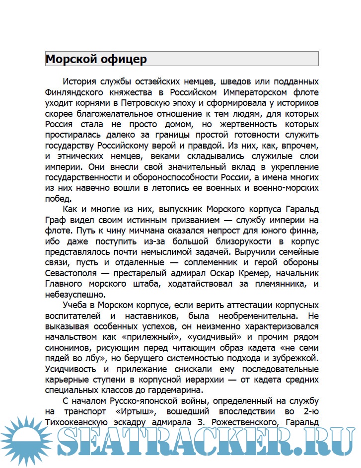Описание: Книга Гаральда Карловича Графа (1885–1966), старшего офицера эскадренного миноносца «Новик», капитана 2-го ранга, участника Русско-японской, Первой мировой и Гражданской войн, эмигранта с 1921 года, является первой частью его большого труда – «На “Новике”. Балтийский флот в войну и революцию», изданного в Германии в 1922 году. Успех «Новика» был феноменален, тираж быстро разошелся, при этом одна часть его была вывезена в РСФСР, а другая прочно осела в частных и общественных библиотеках русской эмиграции. Книгу читали обыватели, морские офицеры канувшей в историю Российской империи, великие князья, либералы русского зарубежья, которые в жизни не имели интереса к морской службе. Читали даже преподаватели советских военных академий и работники ОГПУ по долгу службы…
