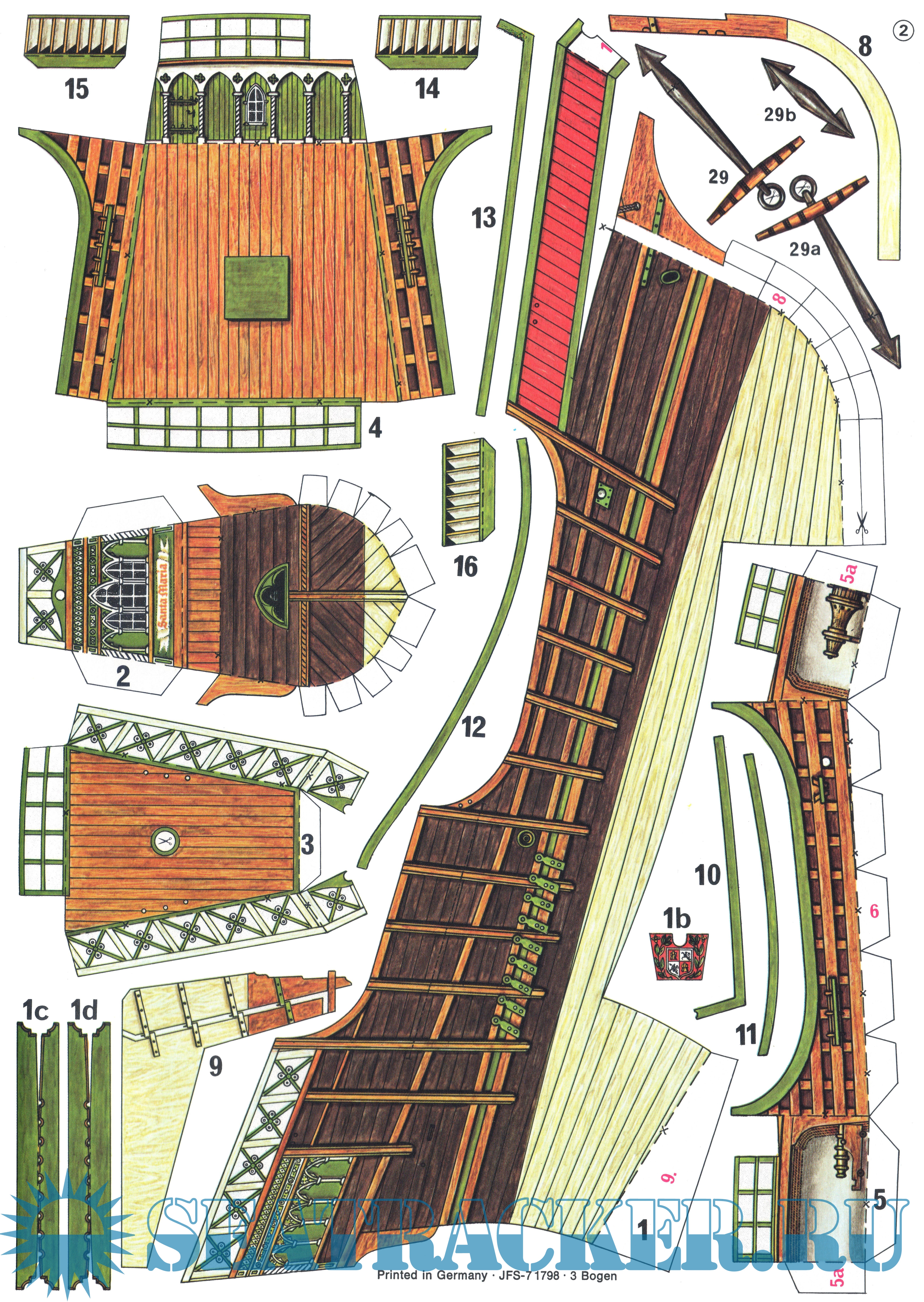 15 листов цветных выкроек и инструкций для изготовления бумажной модели флагманского парусного корабля Колумба ''Santa Maria'' 1492 год в масштабе 1:100Скриншоты