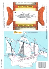 Описание: 15 листов цветных выкроек и инструкций для изготовления бумажной модели флагманского парусного корабля Колумба ''Santa Maria'' 1492 год в масштабе 1:100