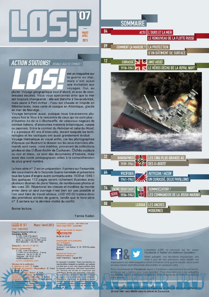 Description: LES ÉDITIONS CARAKTÈRE PRENNENT LE LARGE EN LANÇANT UN NOUVEAU MAGAZINE CONSACRÉ À LA GUERRE NAVALE !Les sujets passionnants ne manquent pas et LOS ! met un point d’honneur à les présenter au lecteur comme cela n’a jamais été fait dans la presse française jusqu’à présent. Un seul mot d’ordre pour l’équipe rédactionnelle : rigueur scientifique et présentation ludique !S’appuyant sur un fond photographique d’exception, sur des plans de bateaux et d’avions, les éditions Caraktère innovent une fois de plus en vous proposant aussi des vues 3D détaillées, le tout au service de textes soigneusement rédigés par des auteurs spécialisés. Vous comprendrez ainsi comment fonctionne un submersible, comment se déroule un combat naval, comment est conçu un cuirassé ou comment attaquent les avions-torpilleurs !Revivez au fil des pages l’aventure humaine exceptionnelle des matelots de la marine marchande affrontant les U-Boote en Arctique, ou celle des pilotes embarqués sur les porte-avions américains et japonais. Lisez les exploits des hommes-grenouilles italiens en Méditerranée, des équipages des vedettes lance-torpilles dans la Manche, des sous-marins soviétiques de la guerre froide ou des grands cuirassés de 1914-18