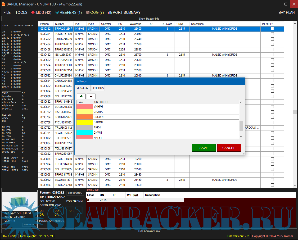 Description: Software for reading and editing BAPLIE files with cargo information for container ships.