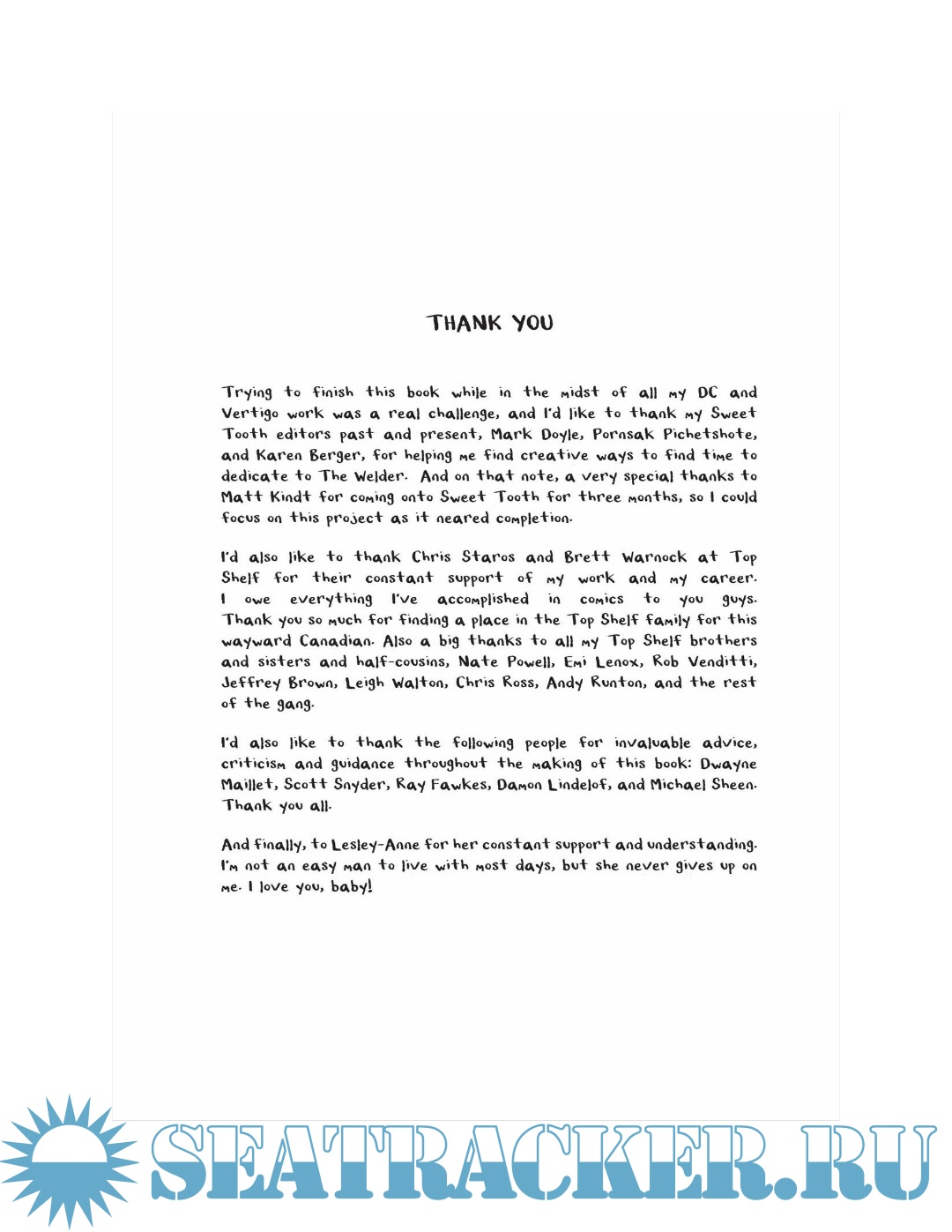 Year: 2012 Language: English Author: Jeff Lemire Publisher: Top Shelf Productions Edition: Kindle Format: PDF Quality: eBook Pages count: 249 Description: Pressure. As an underwater welder on an oilrig off the coast of Nova Scotia, Jack Joseph is used to the immense pressures of deep-sea work. Nothing, however, could prepare him for the pressures of impending fatherhood. As Jack dives deeper and deeper, he seems to pull further and further away from his young wife, and their unborn son. But then, something happens deep on the ocean floor. Jack has a strange and mind-bending encounter that will change the course of his life forever. ... Equal parts blue-collar character study and mind-bending science fiction epic, The Underwater Welder is a 250-page graphic novel that explores fathers and sons, birth and death, memory and truth, and treasures we all bury deep down inside.