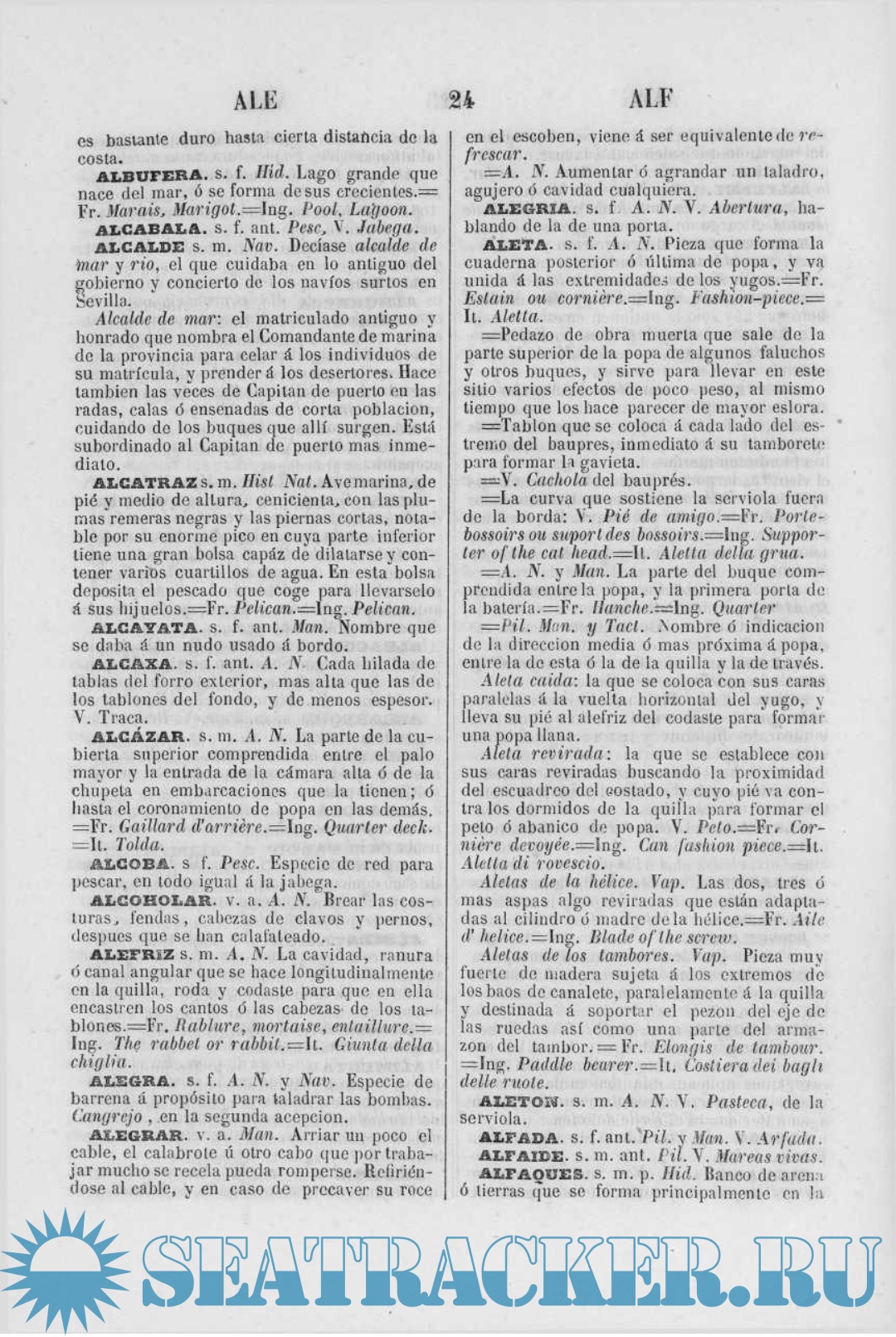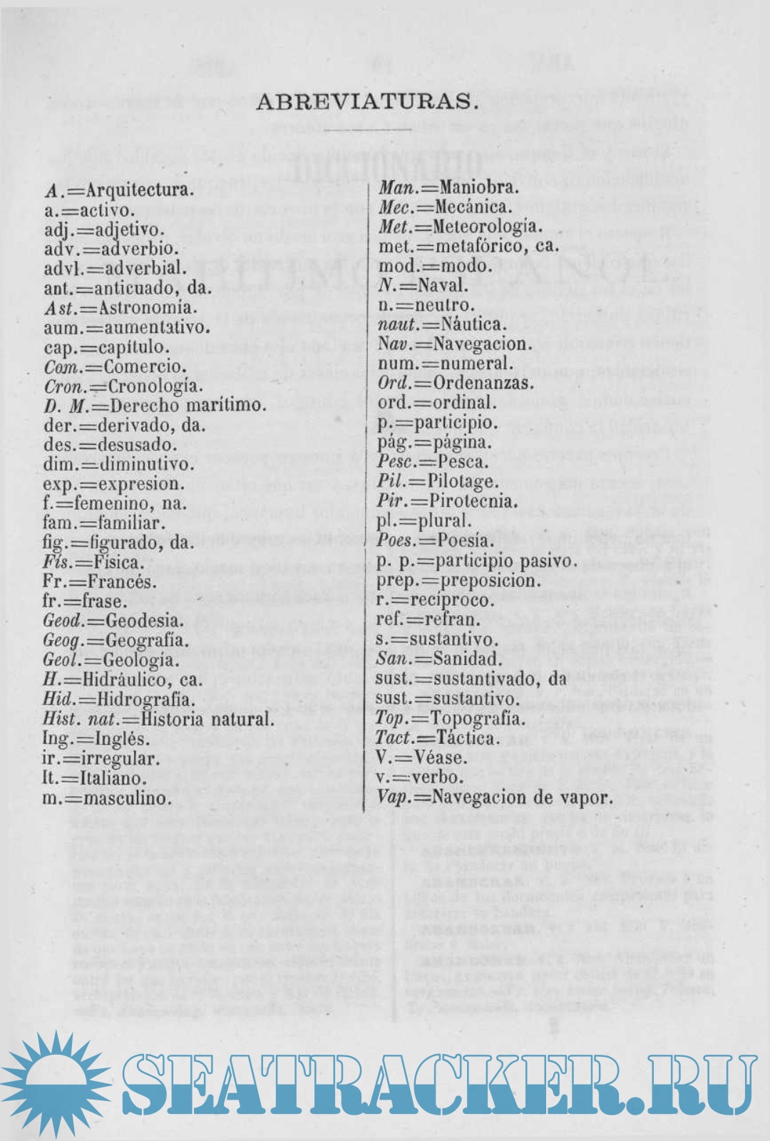 Entre los trabajos que hemos tenido presentes, nos ha servido de mucho el DICCIONARIO MARÍTIMO, impreso en Madrid el año 1831, el cual, si no completo, es el mejor de este género entre los publicados en nuestro idioma: laboriosa y atinada interpretación de las antiguas obras, y digna por su mérito de los elogios que no vacilamos en tributar á sus autores.