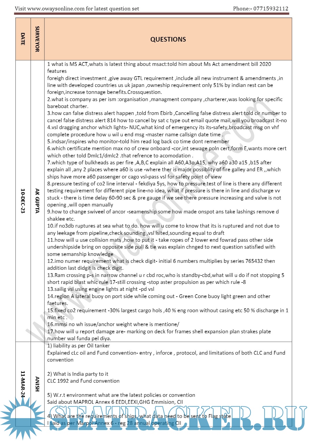 Orals Question Bank (April 2024) for ASM (Advanced Shipboard Management) / Master's Mercantile Marine Department (MMD), India Examinations