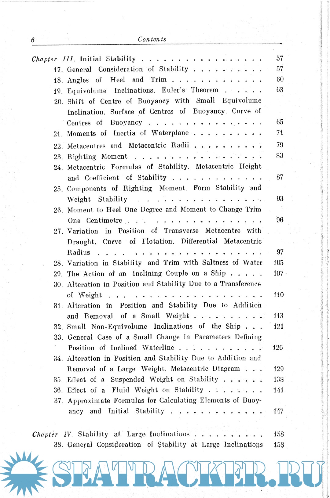 The book treats the problems concerned with the buoyancy and stability of a complete and demaged ship encountered by the naval architect in the design, building and operation of ships. It presents the theory of the subject matter and the methods of calculations employed in ship cpnstruction.