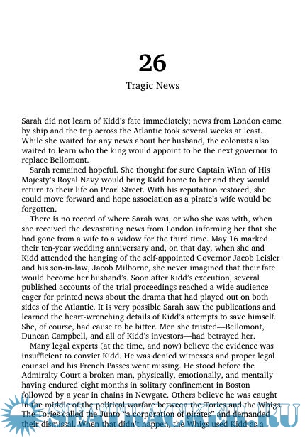 That accomplice was his wife, Sarah Kidd, a well-to-do woman whose extraordinary life is a lesson in reinvention and resourcefulness. Twice widowed by twenty-one and operating within the strictures of polite society in seventeenth- and eighteenth-century New York, Sarah secretly aided and abetted her husband, fighting alongside him against his accusers. More remarkable still was that Sarah not only survived the tragedy wrought by her infamous husband’s deeds, but went on to live a successful and productive life as one of New York’s most prominent citizens.