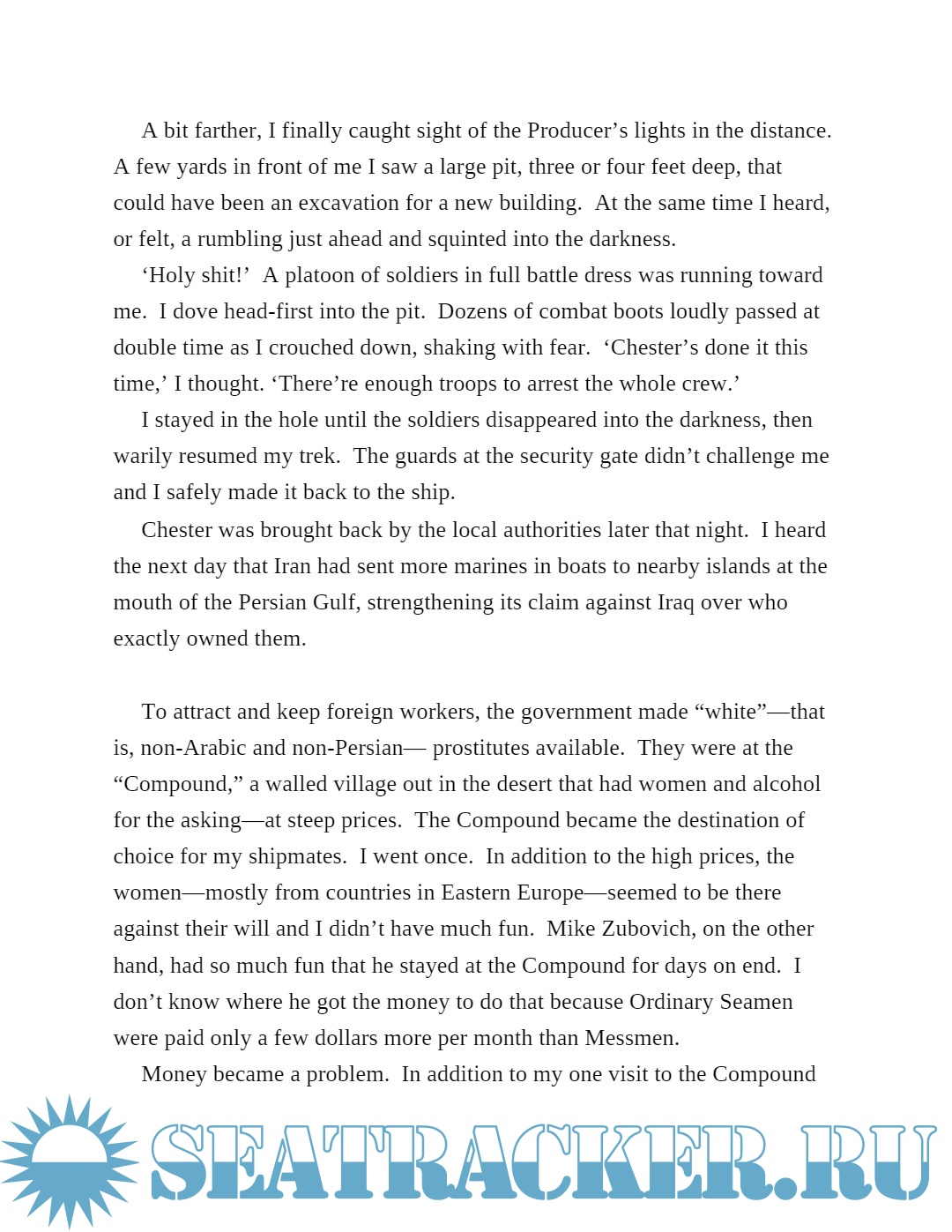 Description: John Merriam was part of the crew for the S.S. Producer when she put in to Bandar Abbas in early 1972, the first U.S-flag ship to visit that godforsaken port. The Shah of Iran was still in power and tension was in the air. Unannounced, and seemingly from nowhere, a man named Mike Costello walked out of the desert. He came aboard the Producer casually as if he were part of the crew, pushing a handtruck stacked with cases of soda--awelcome sight in that parched region of the Persian Gulf. John wouldn’t know until later, when he unwittingly became Mike’s mule, that Mike was a professional smuggler and that hidden between the cases of soda on the handtruck were 40 kilograms of Afghani hashish. John also wouldn’t know until later that Mike’s original mule was one of the Ordinary Seamen on the ship, a man who later would be murdered for reasons that had nothing to do with smuggling.
