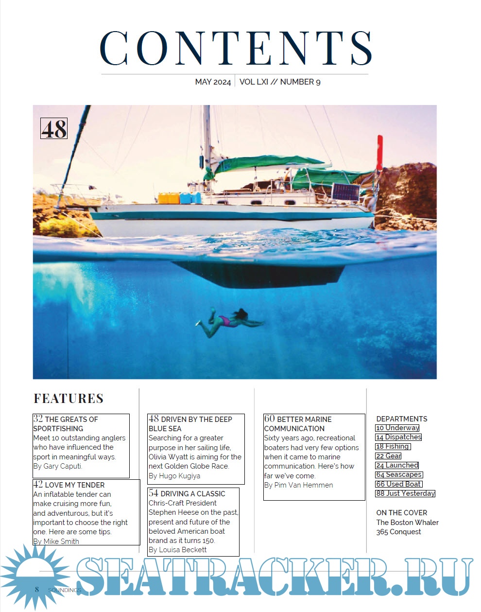 Description: Soundings is the news and feature publication for pleasure boaters.Soundings Magazine entertains and informs a loyal audience of passionate boaters. Our award-winning coverage is designed to inspire and educate our engaged owner/operatQuote | Copy | Translate | Webor audience on the latest developments in boating, while also exploring the heritage, history and passion for our pastime that serious enthusiasts share. SOUNDINGS continues to uphold the highest standards of journalism in all our print and digital offerings.