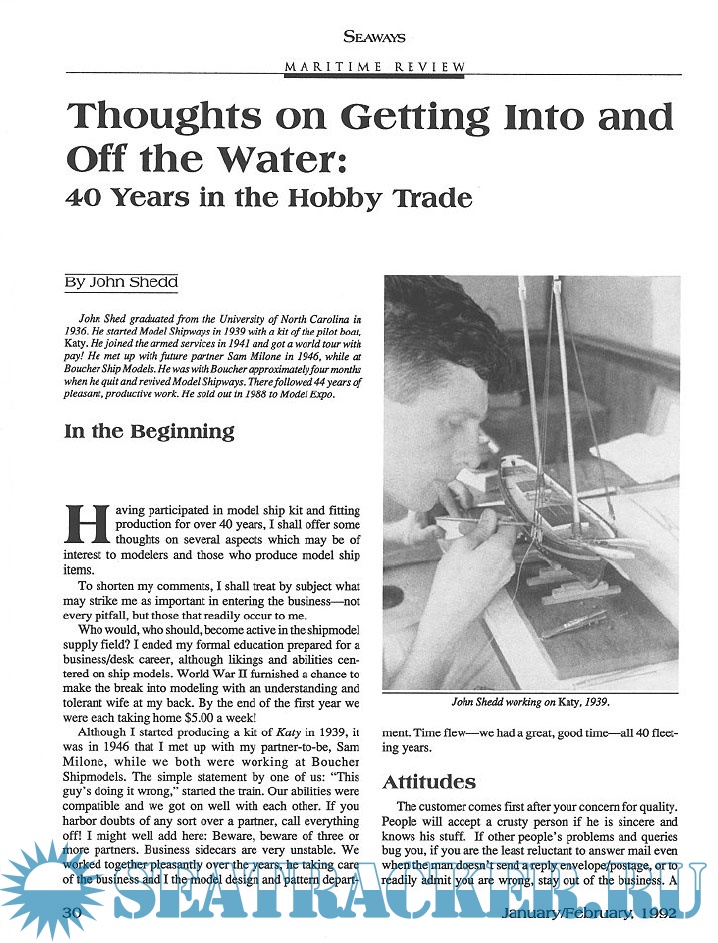 Year: 1992 Language: English Author: Scottie Dayton (Editor) Genre: Periodical (magazine) Edition: 1992-1 Format: PDF Quality: eBook Pages count: 76 Description: Seaway is the home port for Seaways Ships in Scale magazine, the leading workshop and research magazine for the ship modeler. In the magazine we explore all levels of modeling experience, all types of ships, all kinds of models, all historical eras and all construction materials