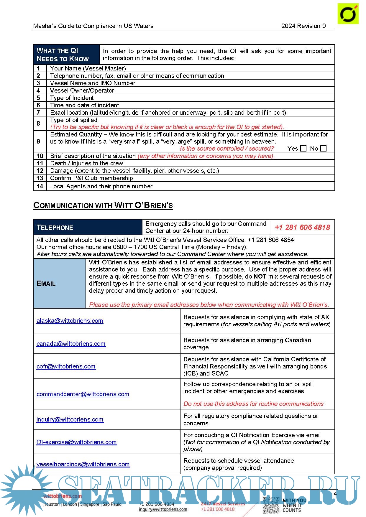 These guides are intended to help the Master effectively and efficiently face these issues. Use of the directions in the guides will allow Witt O’Brien’s to better serve you.