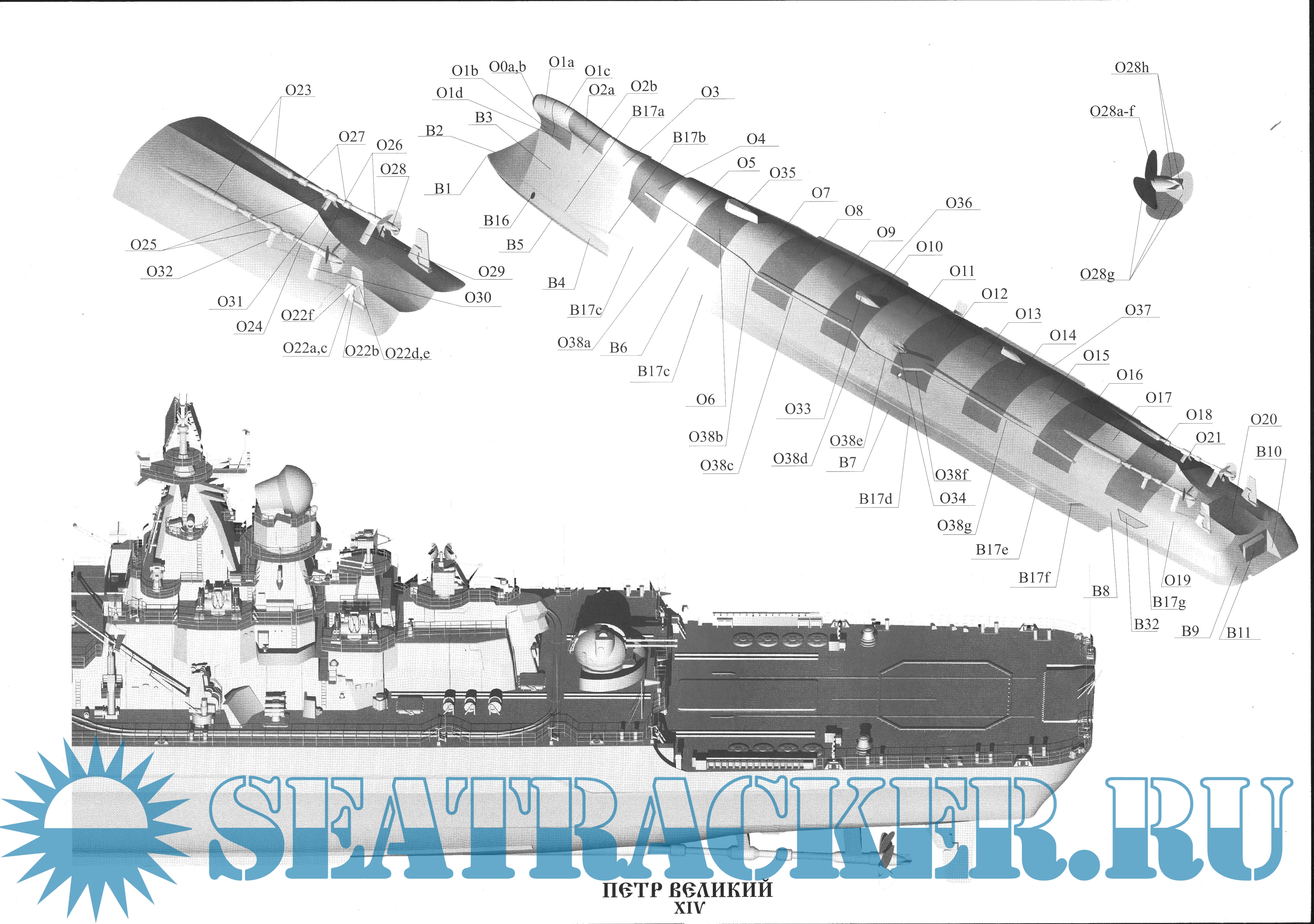 57 листов цветных выкроек и инструкций для изготовления бумажной модели ТАРК Пётр Великий