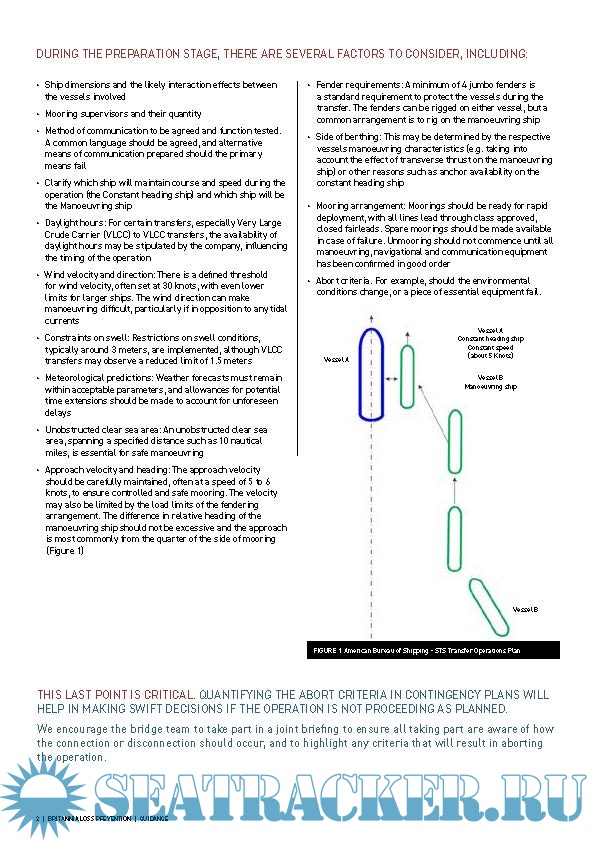 Year: 2024 Language: English Author: Britannia P&I Club Genre: Guide Format: PDF Quality: eBook Pages count: 4 Description: Britannia P&I Club Loss Prevention Guidance. A ship to ship (STS) transfer operation is the transfer of cargo between two ships alongside each other, either while stationary or underway. Before engaging in an STS operation, each ship follows its own set of protocols, typically integrated into the ships Safety Management System (SMS) and risk assessment. Tankers will have a Ship to Ship Transfer Operation Plan (STS plan) approved by their flag to consult and follow, and we recommend that the latest version of the ‘Ship to Ship Transfer Guide’ is consulted when preparing for this operation. This practical guidance provides an overview of the key concepts in ship to ship (STS) transfer operation.