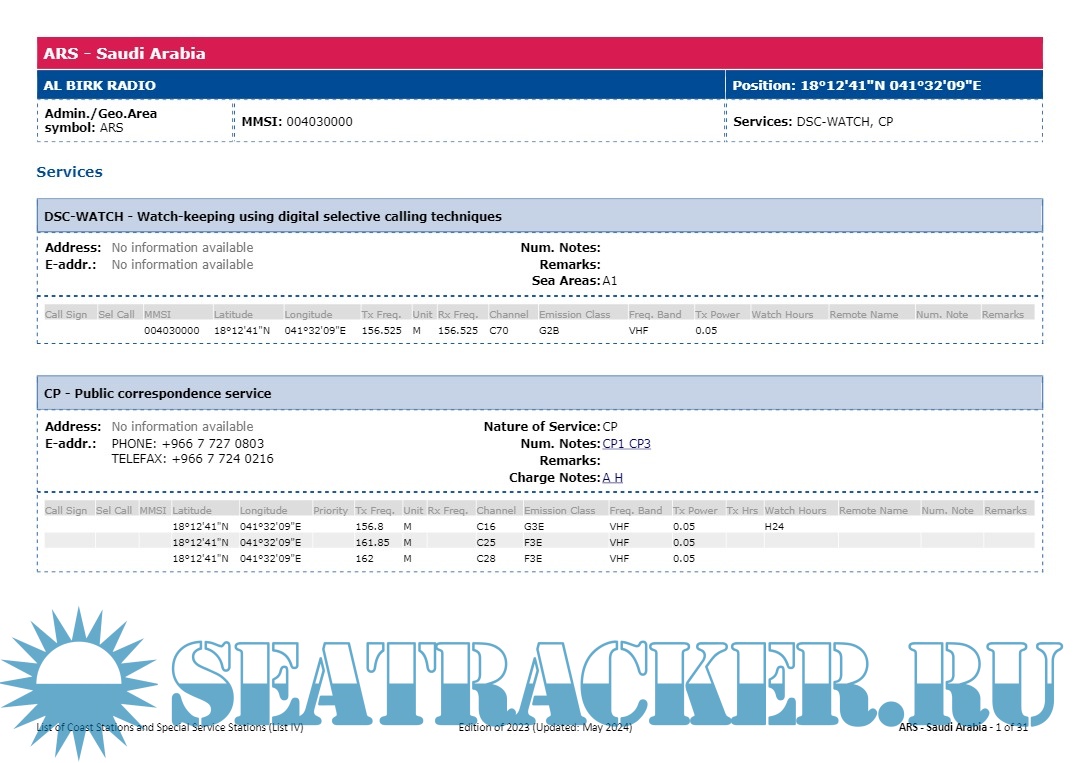 Additional info: These compilations are published for information only and the carriage on board ships applicable to LIST IV is not required (ref. Appendix 16 of the Radio Regulations).