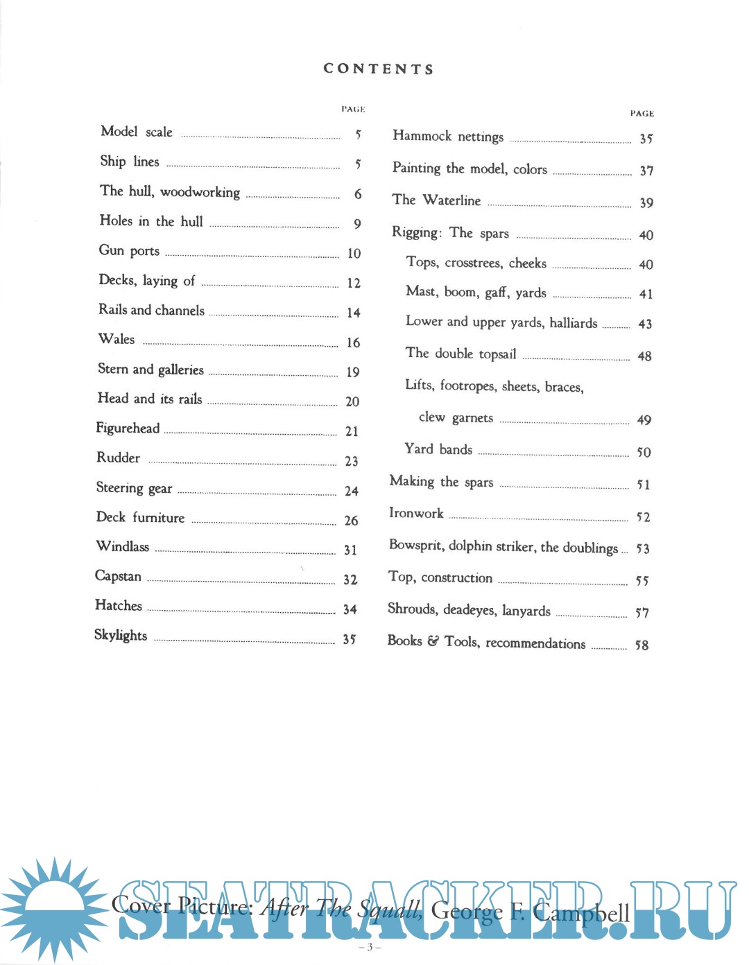 Year: 2007 Language: English Author: Campbell G.F. Genre: Manual Format: PDF Quality: eBook Pages count: 64 Description: This booklet is a guide to techniques of modelling from a wood kit. It is not a description of the construction of any certain model or type of vessel. For details of particular types, there are a number of excellent books which are described on the back page of this booklet. We start with the preparation of the simple hull, move on to the important members, furniture, painting, then, on to the rigging. Some statements herein which seem like pontifications are only efforts to be brief and precise in an immense field of facts and shadings. Shipbuilding methods and design of detail had many similarities over western Europe and America; a good idea knows no boundaries. Further, in America s early days a large proportion of American naval architects were British born and trained, all of them steeped in British practice. Longridge's "Anatomy of Nelson's Ships" is almost as valid a source of detail for CONSTITUTION modellers as for VICTORY and her type.