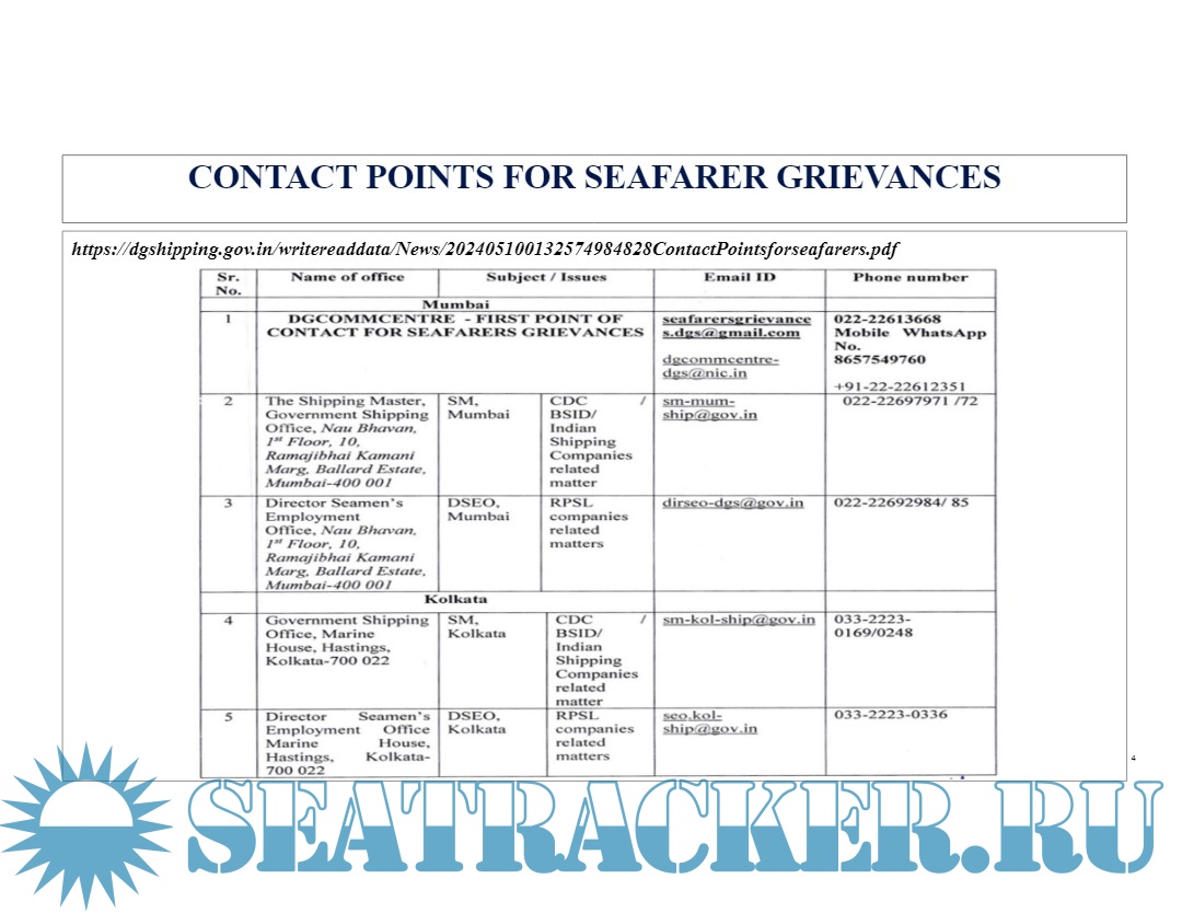Seafarer "Sea-ries" No. 1 - Contact Point for Seafarers Crisis / Grievances