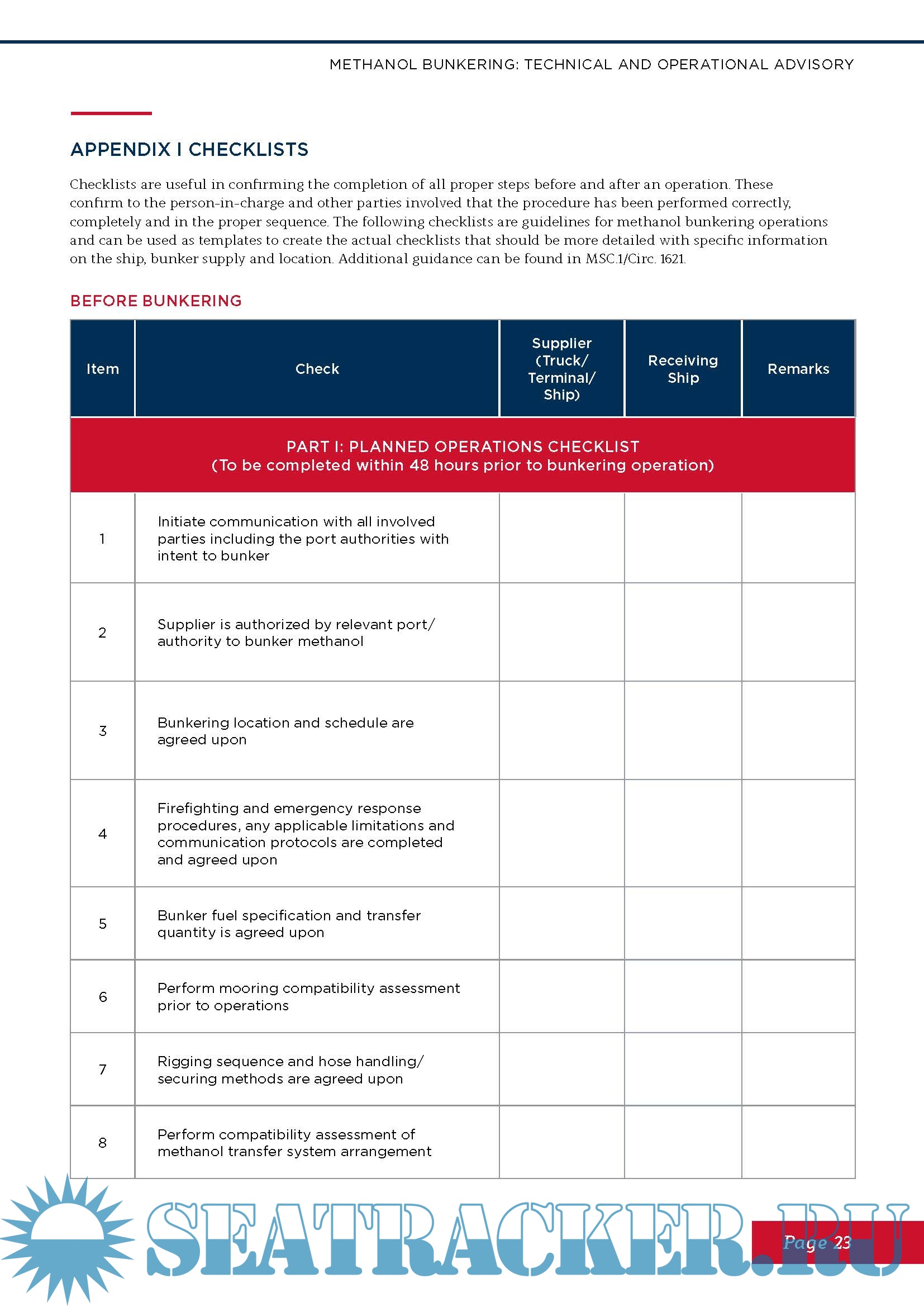 Methanol Bunkering: technical and operational advisory