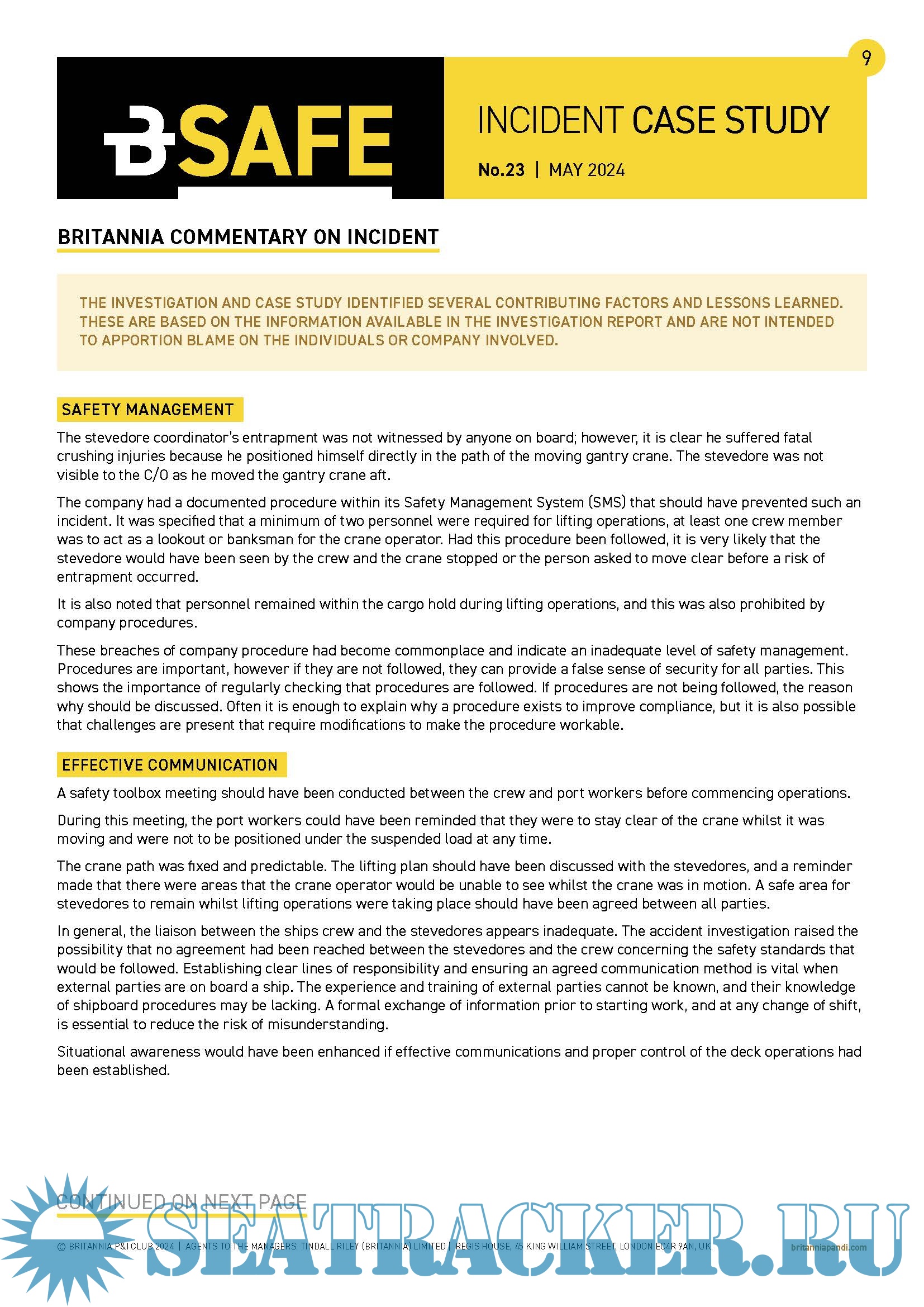 BSafe: Incident Case Study No.19 (June) - Britannia P&I Club [2023, PDF]