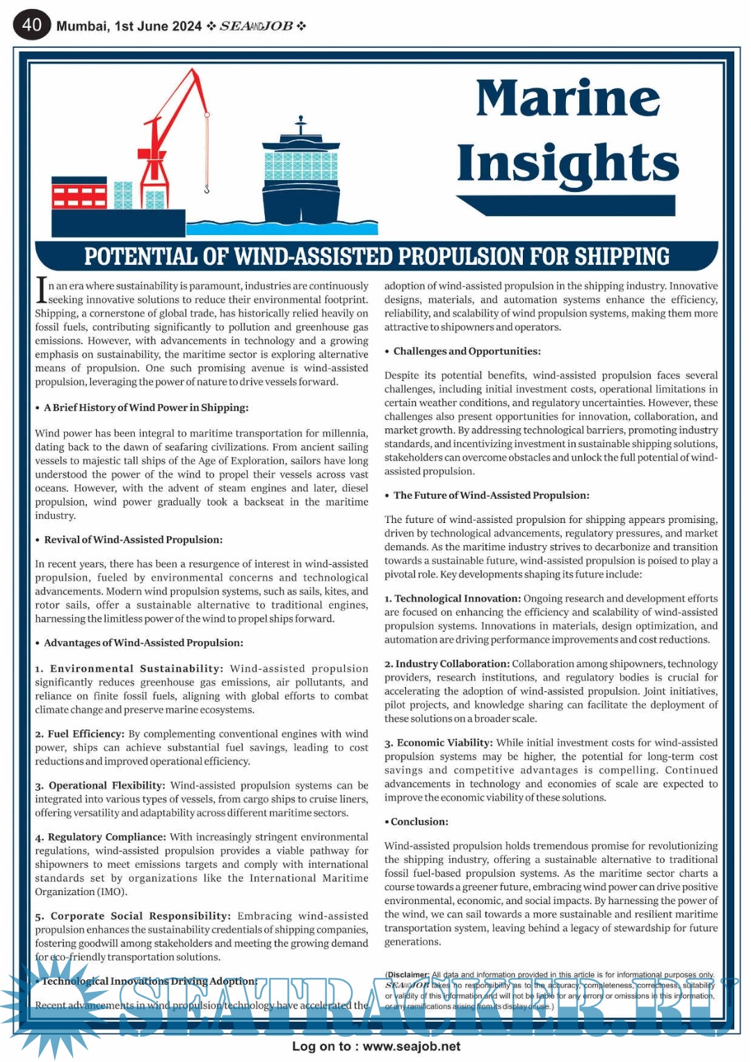 Year: 2024 Language: English Author: Sea Line Group Genre: Periodical (magazine) Edition: Vol. XVII, No. 11/24 Format: PDF Quality: eBook Pages count: 76 Description: The Sea and Job magazine launched in May 2007, was the second venture of Sea Line Group succeeding 'seajob.net' bringing the much renowned essence to the Group, the Sea and Job Magazine quickly gained popularity, becoming the No. 1 Shipping Magazine that came to be widely circulated all over India.Sea and Job over the years has evolved as the most trusted, ethical, objective and read maritime publication that possesses a large database of subscribers from various verticals in the industry.The magazine provides informative and interesting articles covering not just the shipping world but also the world outside it. Sea and Job is also a medium for the shipping/ manning companies to advertise marine jobs and also to promote their organization by publicizing internal activities like seminars, sports events and parties.Some notable endeavors of the magazine include the Know Your Recruiter Column, the Sailing Episodes Column and the Marine Insights section. The consistent efforts and the dedication to provide extraordinary services to the industry has resulted in the magnifying popularity and patronage of Sea and Job. Additional info: 1-15 June 2024.