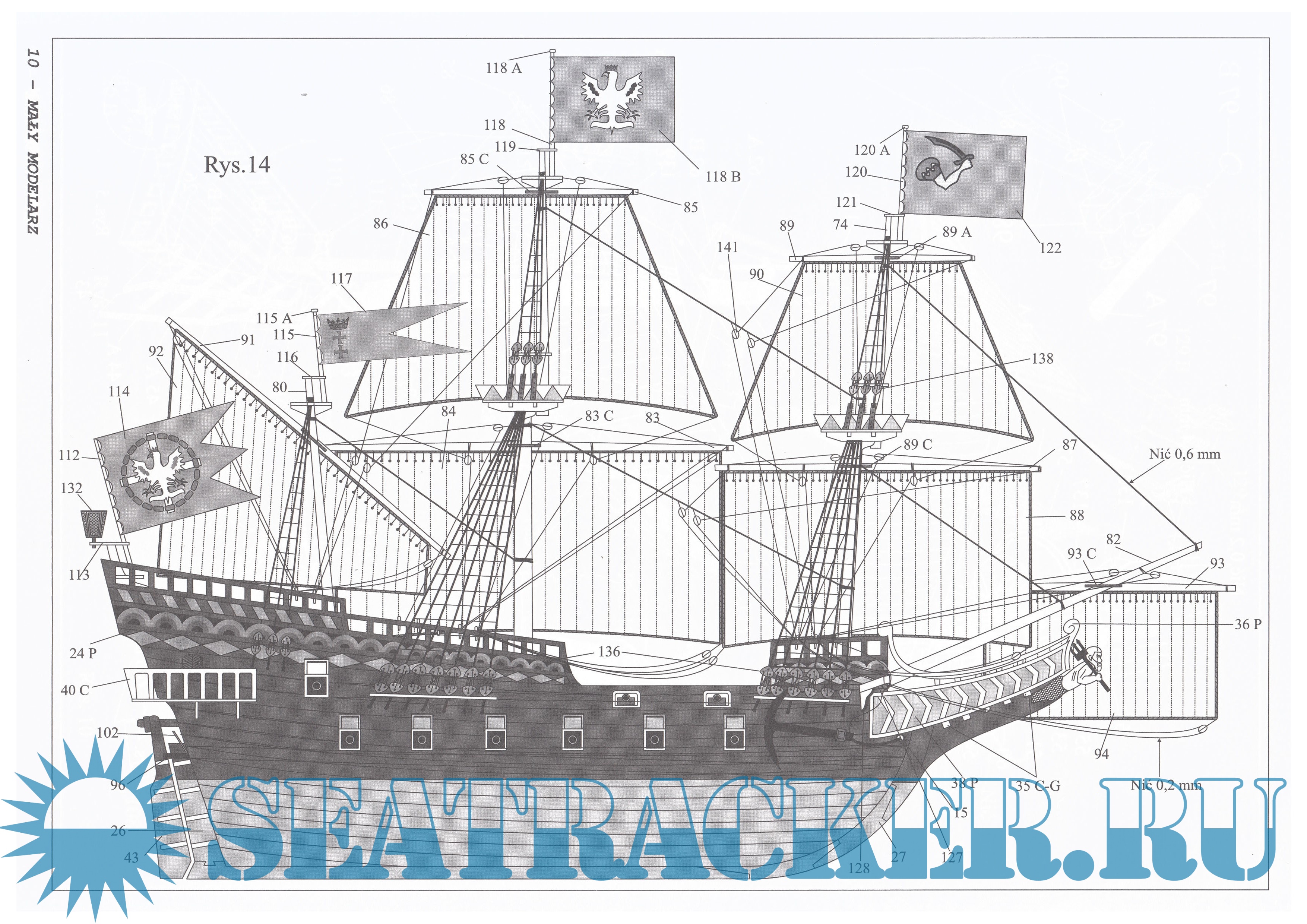 18 листов цветных выкроек и инструкций для изготовления бумажной модели польского парусного корабля "Wodnik" в масштабе 1:100Скриншоты