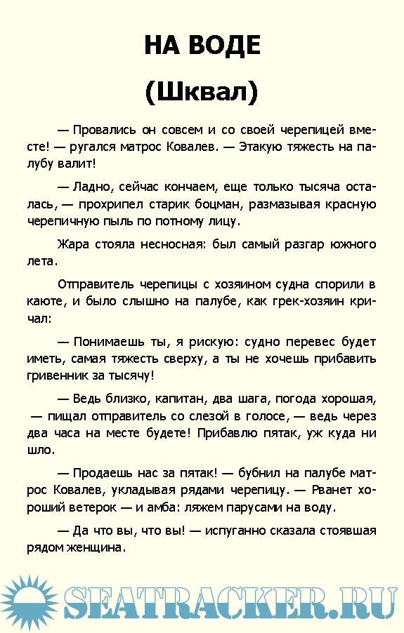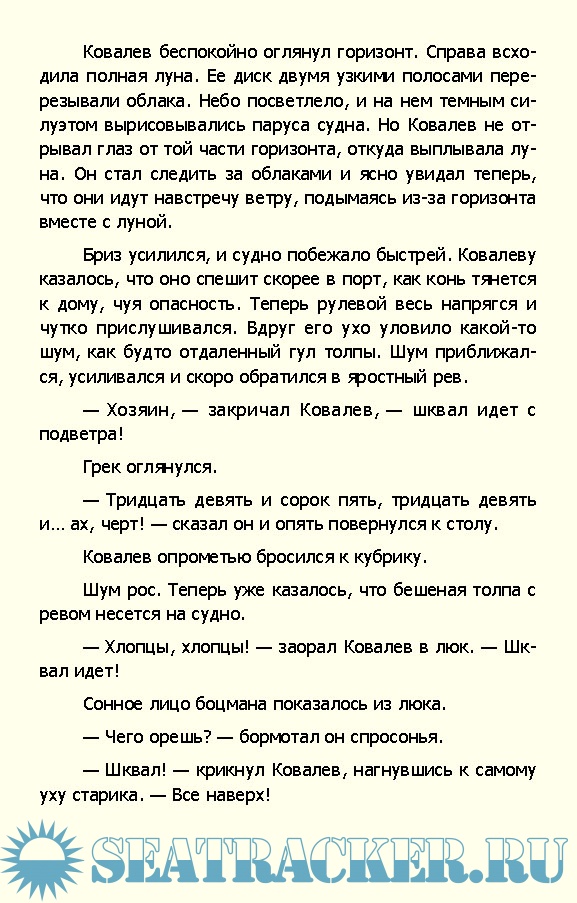 В 27 лет будущий писатель был назначен капитаном научно-исследовательского судна, а в 30 ему посчастливилось стать участником кругосветного путешествия и побывать в Индии, Японии, Китае. Неслучайно первый сборник рассказов Б.С. Житкова посвящен морской стихии и называется "Злое море" (два рассказа из этого сборника - ""Мария" и "Мэри"" и "Шквал" - вы найдёте в этой книжке).