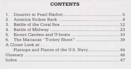Year: 1991 Language: English Author: Wallace B. Black, Jean F. Blashfield Genre: History Publisher: Crestwood House Edition: World War II 50th Anniversary Series Format: PDF Quality: Scanned pages Pages count: 56 Description: An account of aircraft carrier activity during World War II, focusing on the battles of the Coral Sea, Midway, and the Marianas.