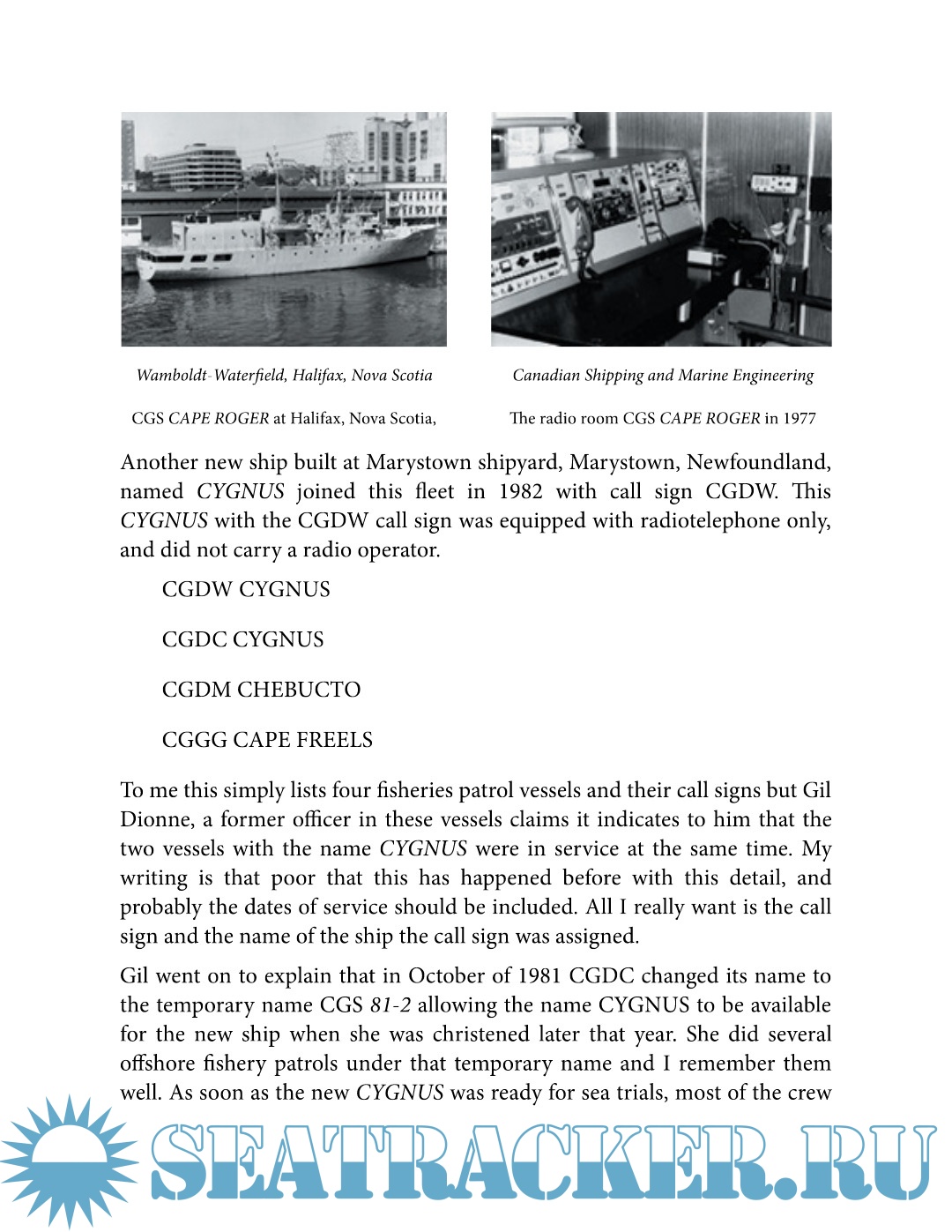 Roscoe also mines his first-hand experience as a radio officer who sailed on a dozen ships, including a reproduction of the ill-fated HMS Bounty. Now in his eighties, he has been meticulously collecting the content for Radio History Ship to Shore for more than five decades. The result is a hefty tome in which Roscoe shares his encyclopedic knowledge and unyielding fascination with communications systems. The book includes all the vessels in the RCMP marine section (and, later, marine division), the RCAF marine squadrons, the Royal Canadian Navy, the Canadian Government Merchant Marine, and the Canadian Coast Guard, including the weather ships, and icebreakers.